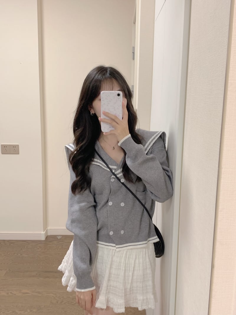 Sweet Girl プレッピー スタイル スーツ レディース 秋 セーラー襟 ルーズ カーディガン A ライン ショート スカート 2 点セット服 大人ガーリー スウィート キュート カジュアル オータム 秋物 Aライン