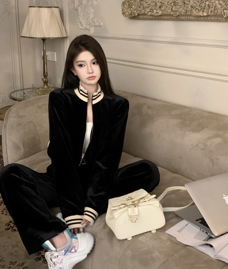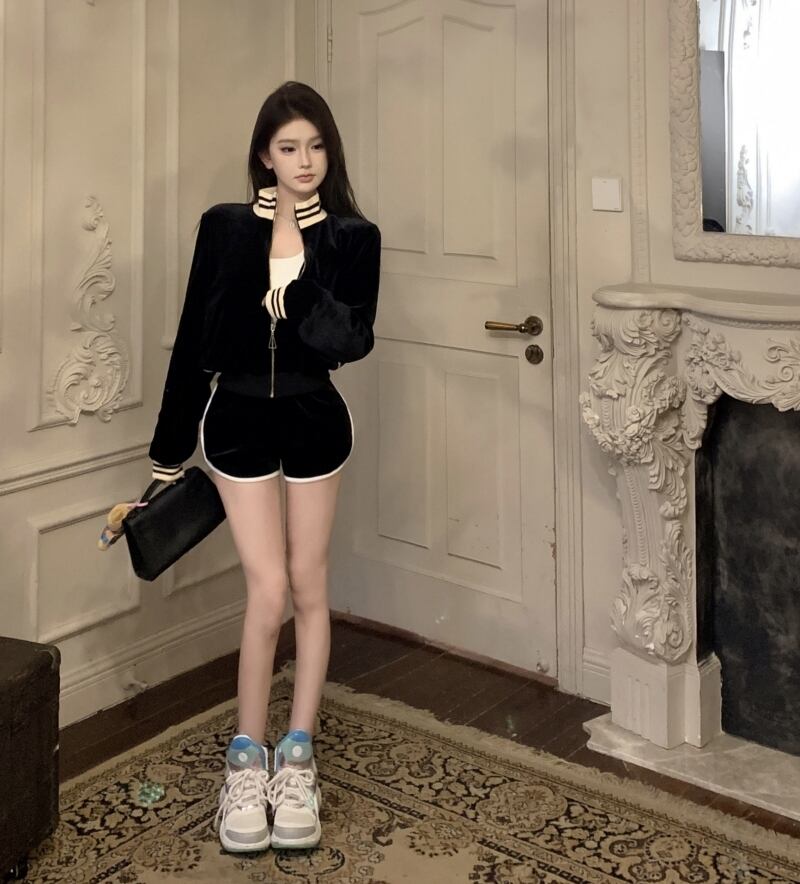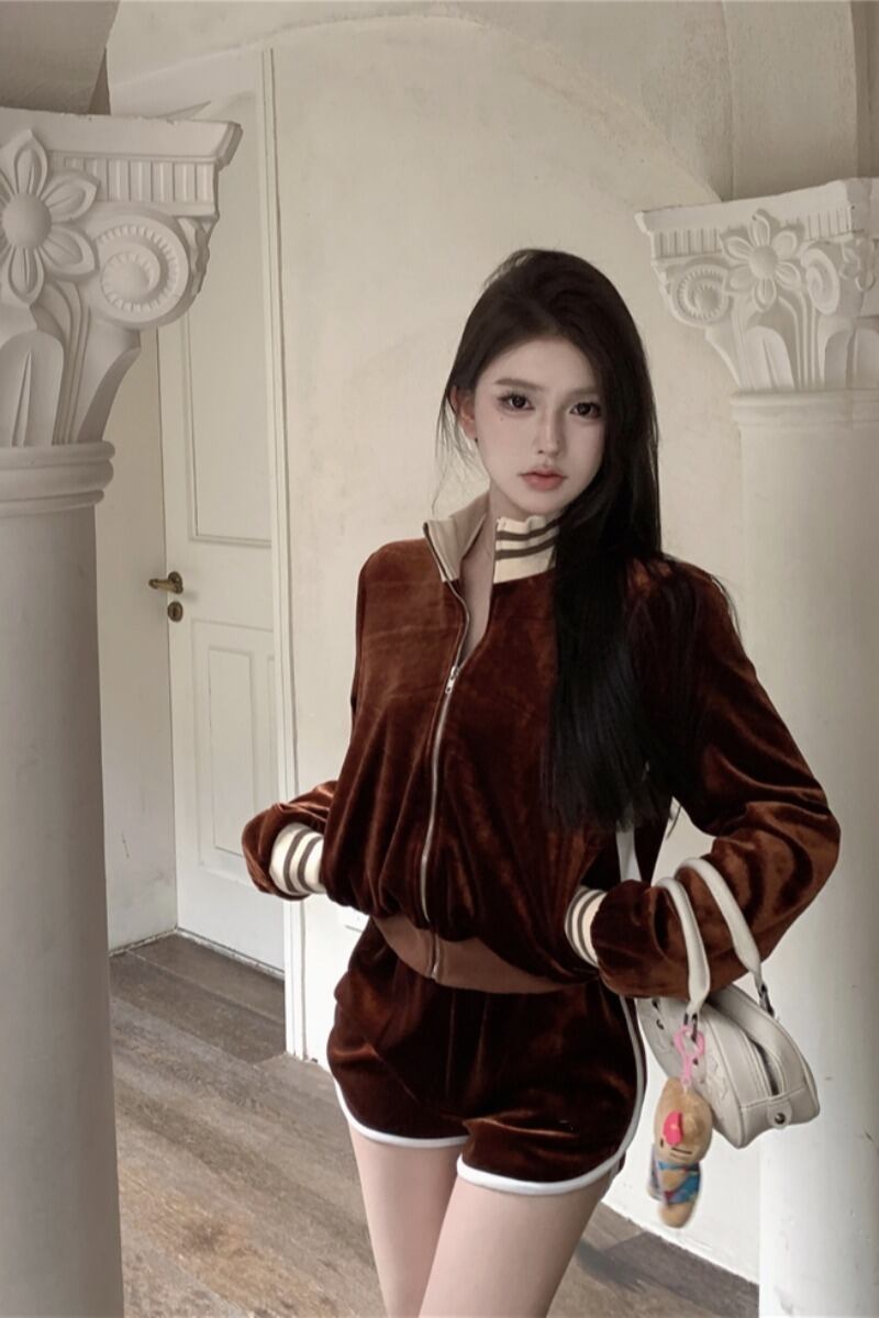 スイートホットガールスーツ秋スタンドカラー長袖ジャケットウエストショーツツーピースセット服 ロング 大人ガーリー スウィート キュート カジュアル オータム 秋物 ブルマー