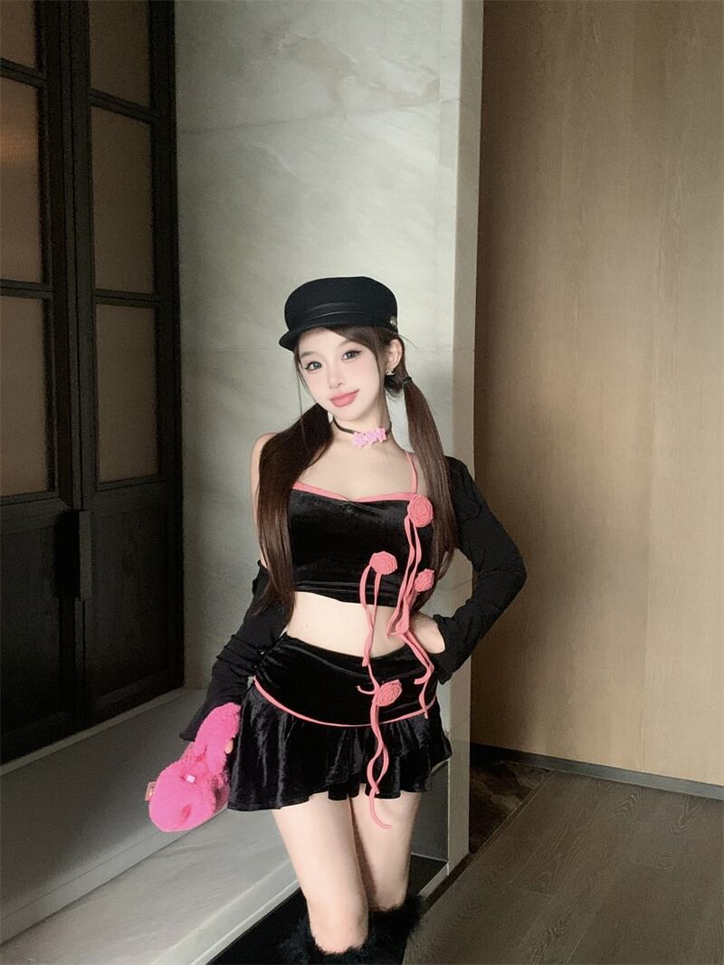 セクシーホットガールスーツ秋スリムショートキャミソールコートウエストミニスカート 3 点セット服 オータム 秋物