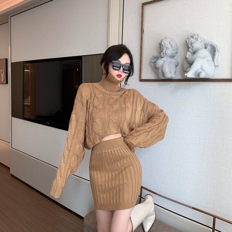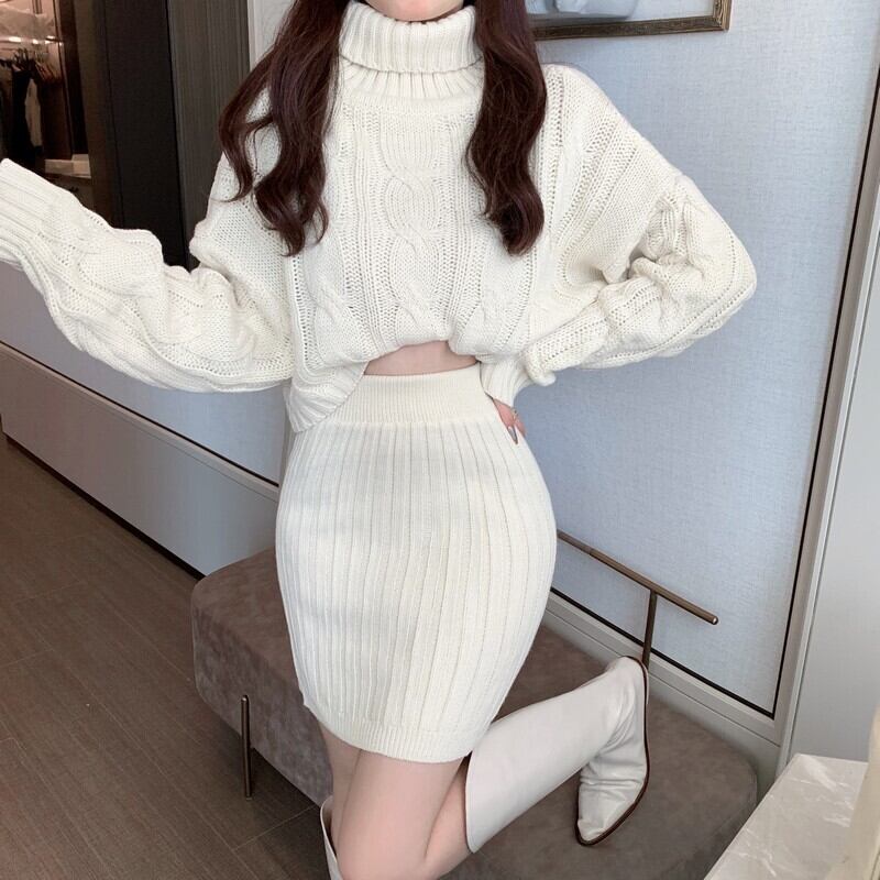 フレンチスイートホットガールスーツ秋ぬいぐるみニット長袖プルオーバーミニスカートツーピースセット服 ロング 大人ガーリー スウィート キュート カジュアル オータム 秋物