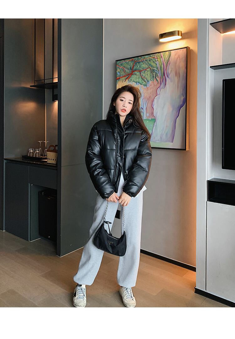 甘いホットガール黒 Pu レザーショートダウンコットンジャケット冬スリムフィット肥厚パンジャケット服 ブラック 大人ガーリー スウィート キュート カジュアル ウィンター 冬物