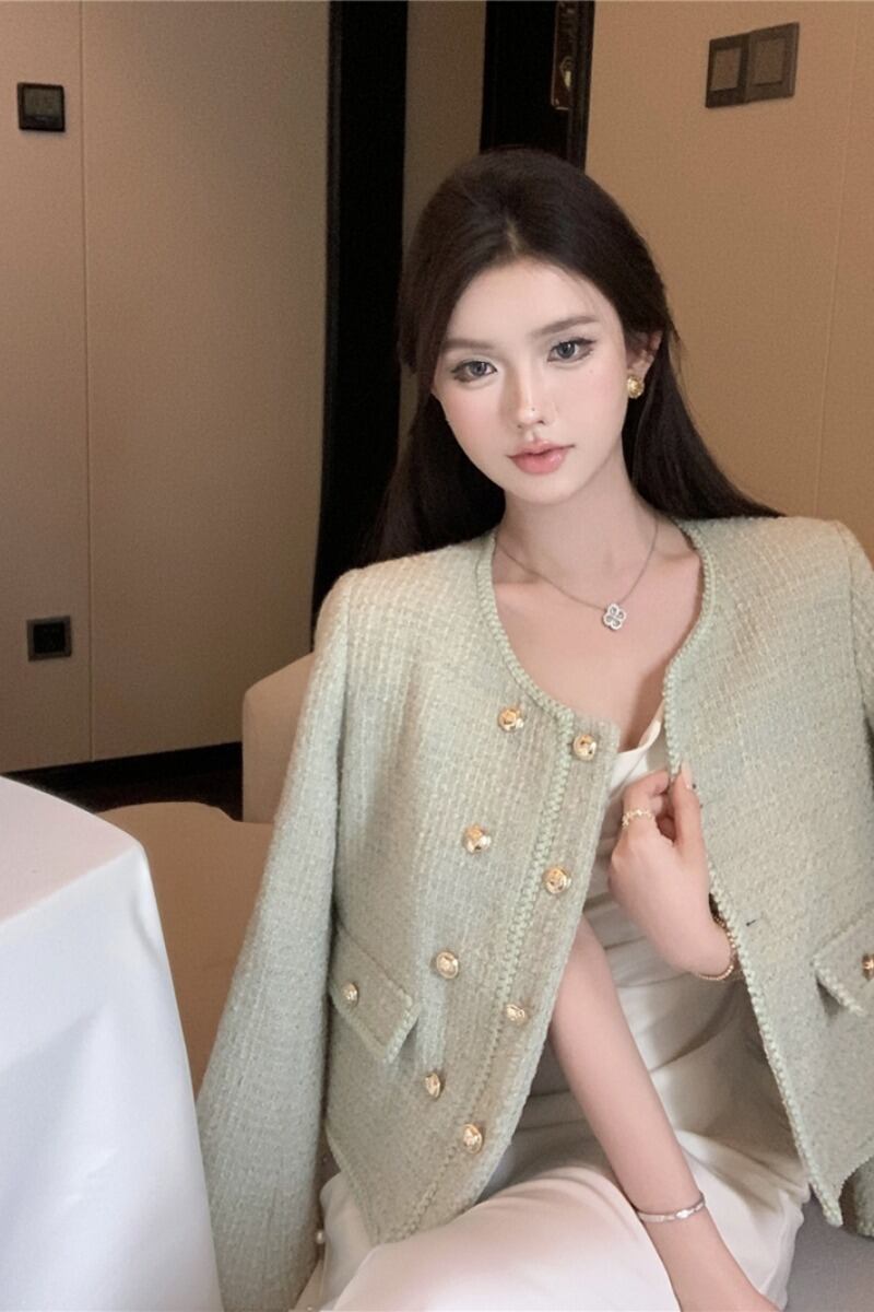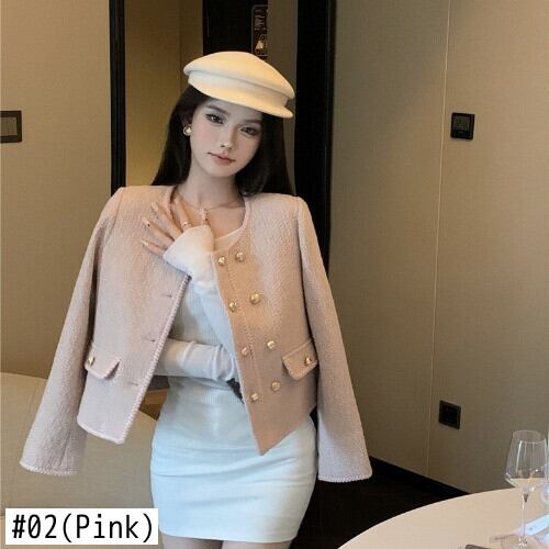 Sweet Girl ウールショートコート秋/冬長袖厚手ツイードダブルブレストジャケット服 ロング 大人ガーリー スウィート キュート カジュアル オータム 秋物 ウィンター 冬物