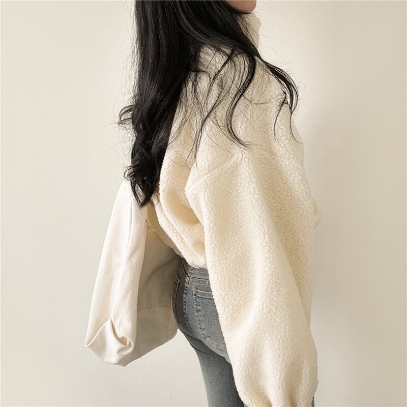 オーバーサイズラムウールトレーナー秋/冬肥厚ルーズカーディガンジッパースタンドカラーコート服 オータム 秋物 ウィンター 冬物