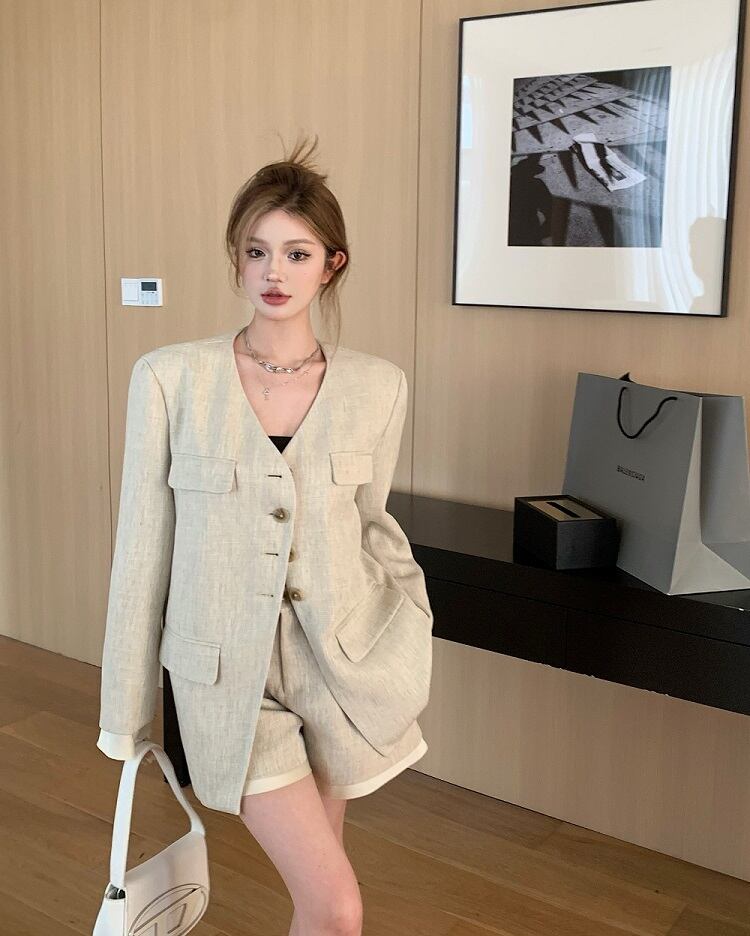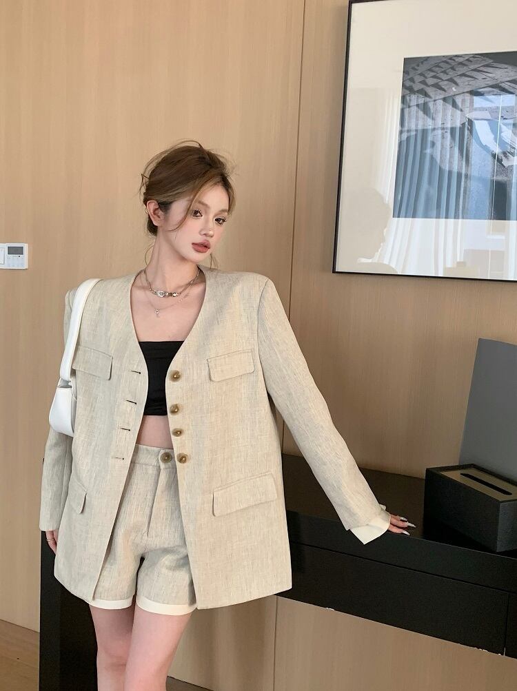 甘いホットガールスーツ秋 V ネックルーズジャケットウエストワイドレッグショーツ 2 点セット服 大人ガーリー スウィート キュート カジュアル オータム 秋物 ブルマー Vネック ワイドパンツ