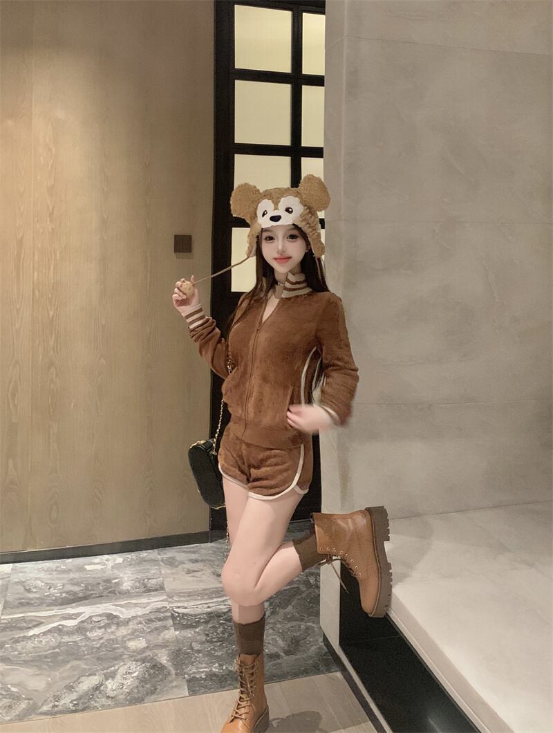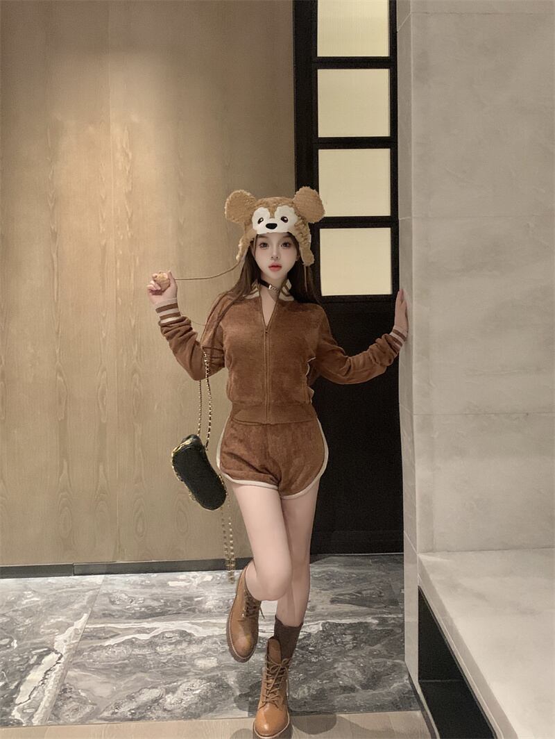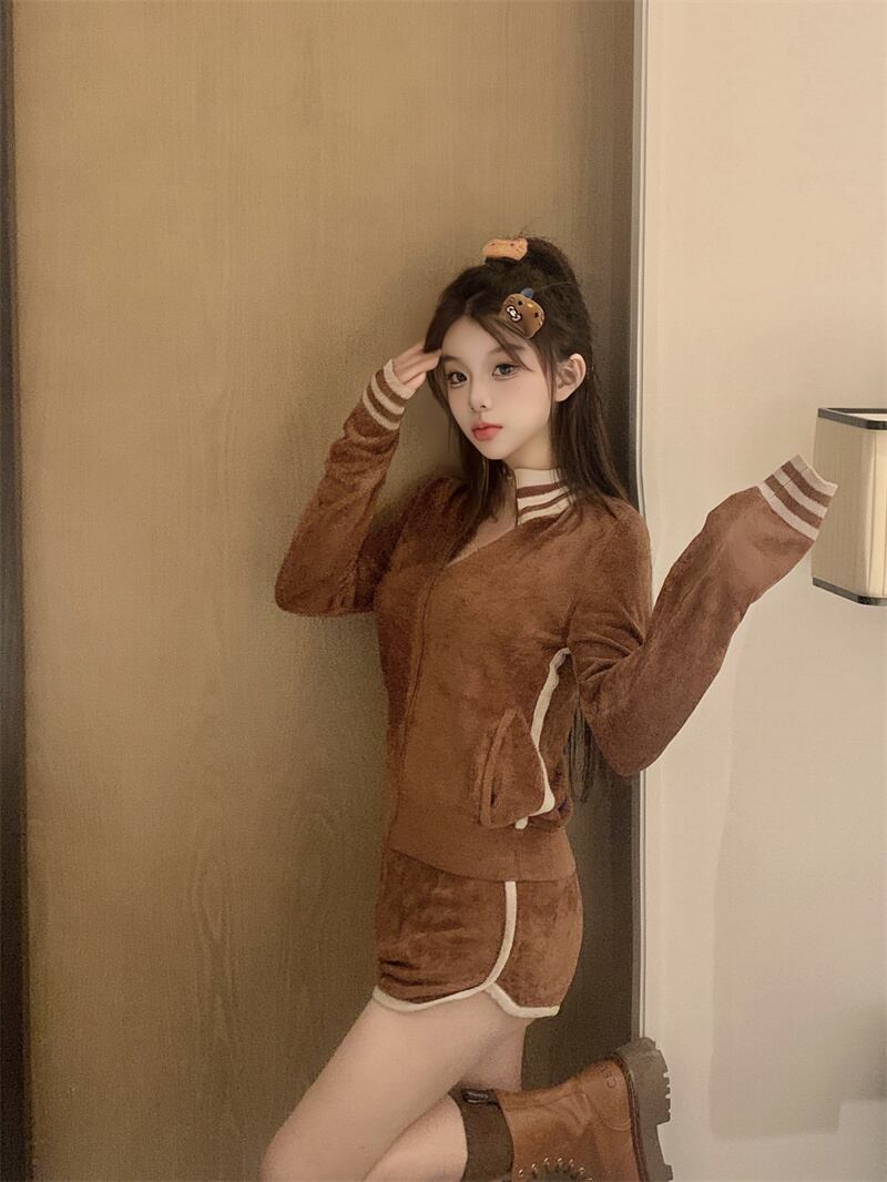 ベルベットスポーティスーツ秋長袖コートラップヒップショートパンツツーピースセットファッション服 ロング オータム 秋物