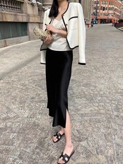 Sweet Girl サテンロングスカート秋ミッドレングスアセテートウエストスプリット A ラインヒップラップスカート服 大人ガーリー スウィート キュート カジュアル オータム 秋物 Aライン