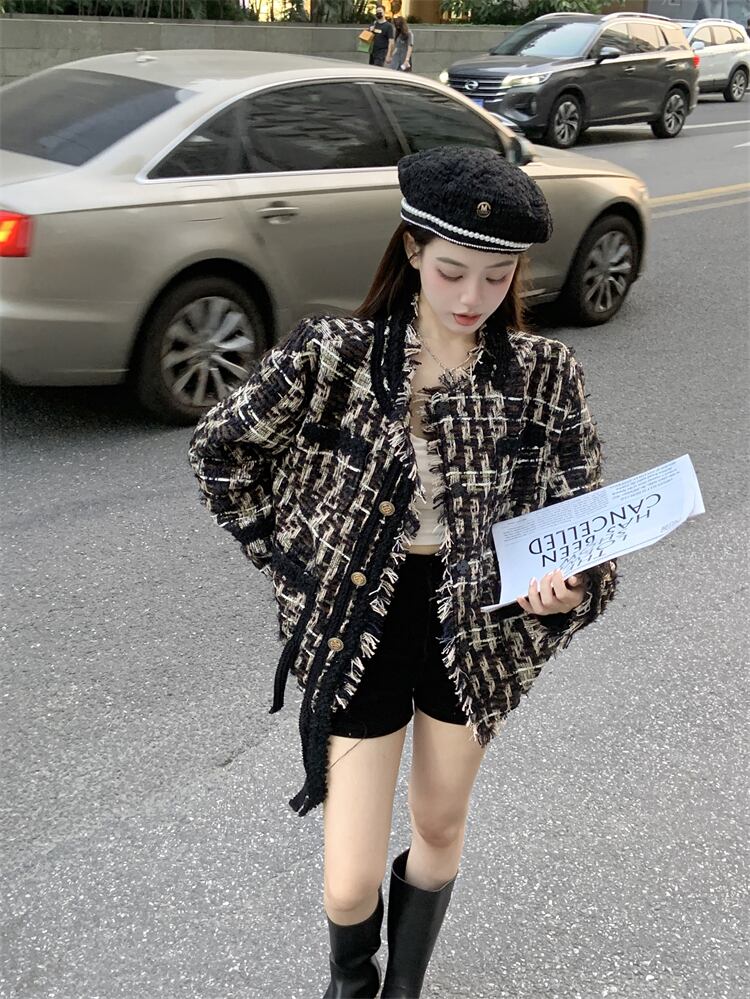 フランス多用途コート冬ブラックゴールド織ラウンドネックシングルブレストテルコート服 ウィンター 冬物 Oネック