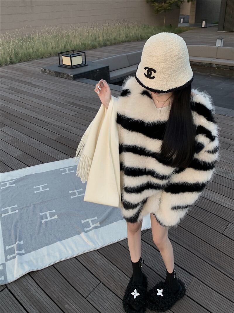 スタイルホットガールルーズセーター秋厚さ豪華ゼブラ V ネックニットプルオーバー服 オータム 秋物 Vネック