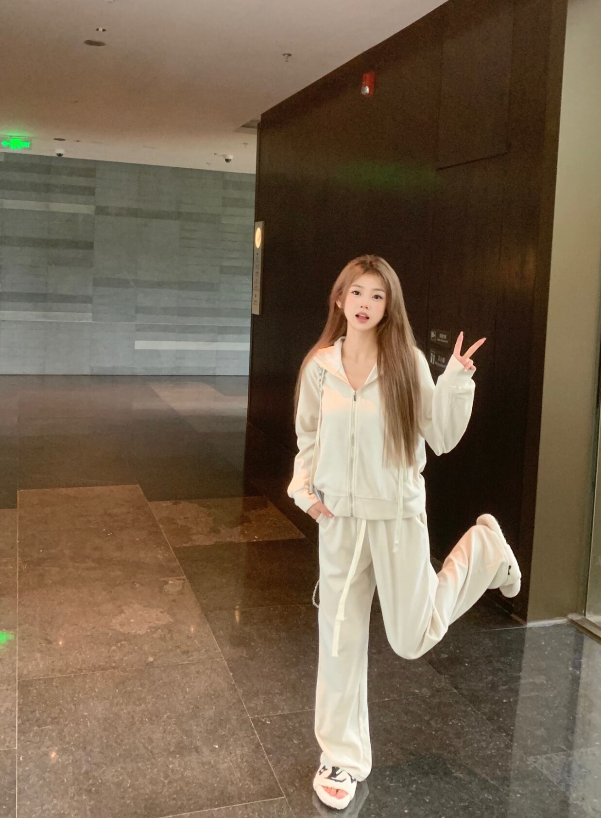 ピンク スーツ レディース 秋 ゆったり 長袖 パーカー ワイドレッグ パンツ 2点セット 服 ロング オータム 秋物 ワイドパンツ
