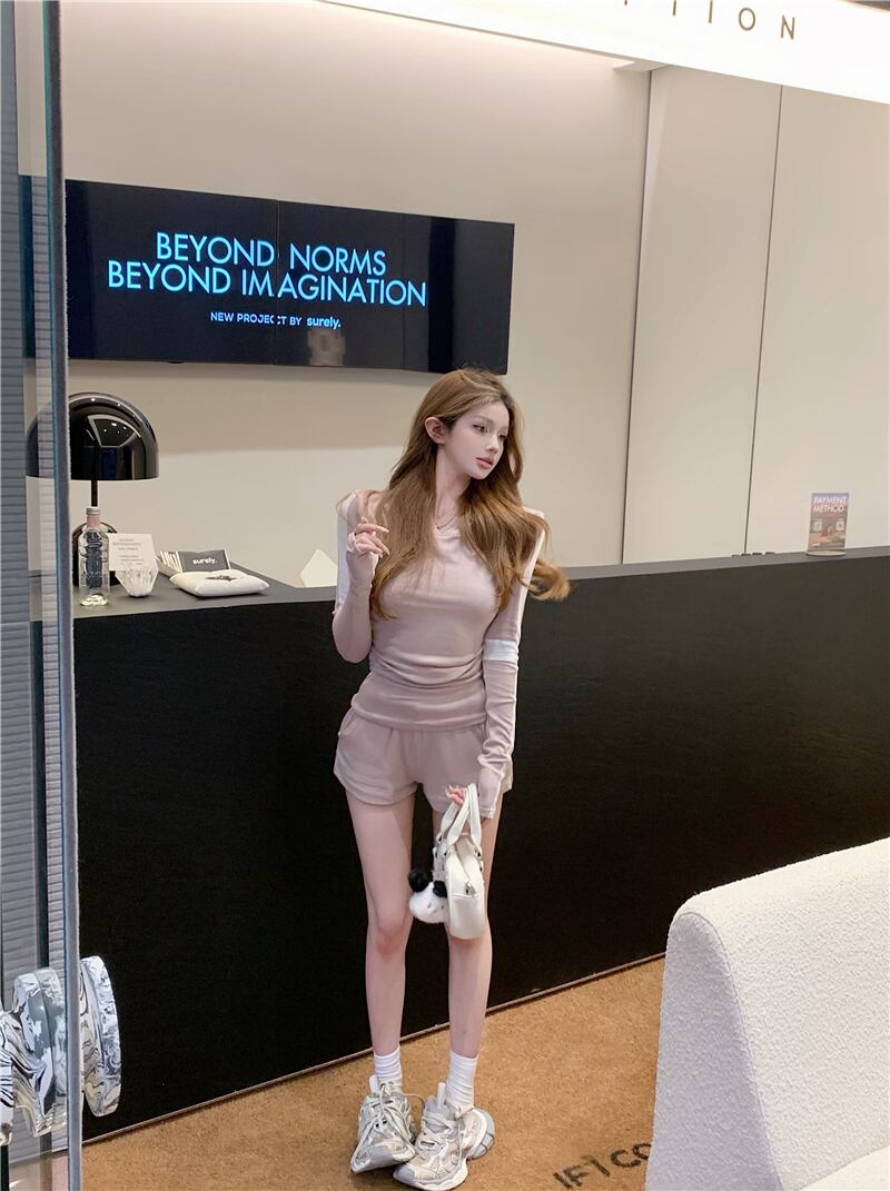 甘いホットガールズスーツ秋長袖パーカー多用途ローウエストショートパンツ 2 点セット服 ロング 大人ガーリー スウィート キュート カジュアル オータム 秋物 ショーツ ブルマー