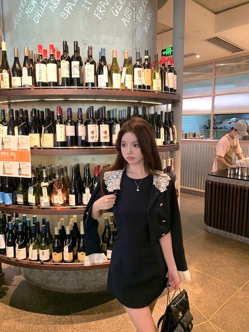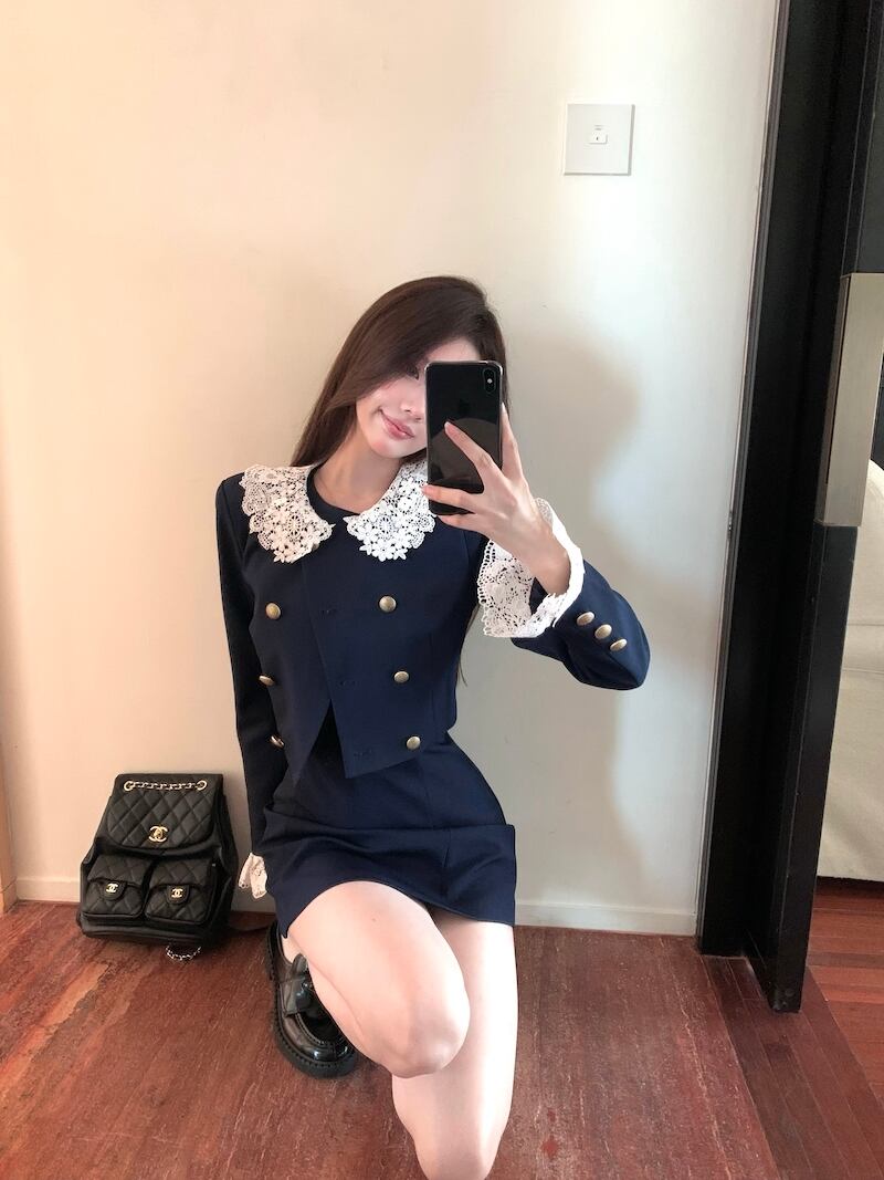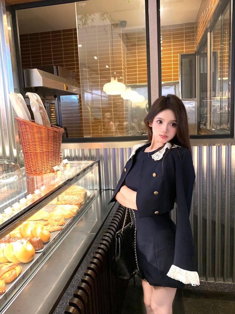 スタイル ブリティッシュ スタイル スーツ レディース 秋 スリム フィット レース パッチワーク 長袖 ショート コート ボトリング ドレス 2 点セット ロング オータム 秋物
