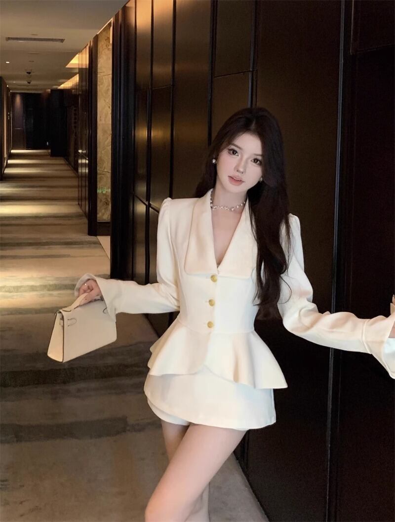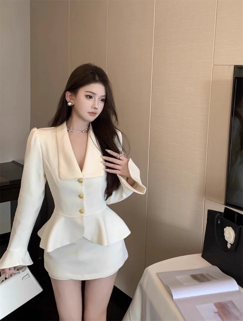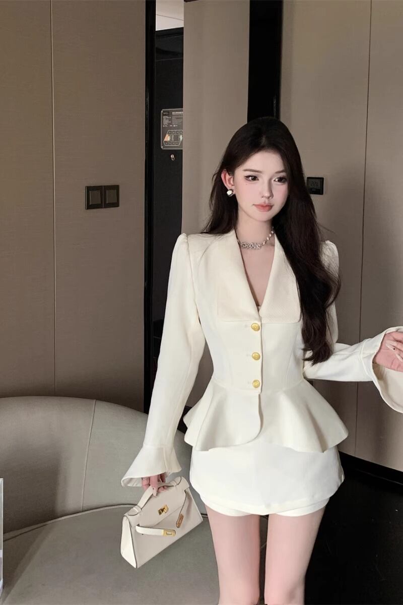 フレンチスタイルスウィートガールスーツ秋フレア長袖トップAラインミニスカートパンツツーピースセット服 ロング 大人ガーリー キュート カジュアル オータム 秋物