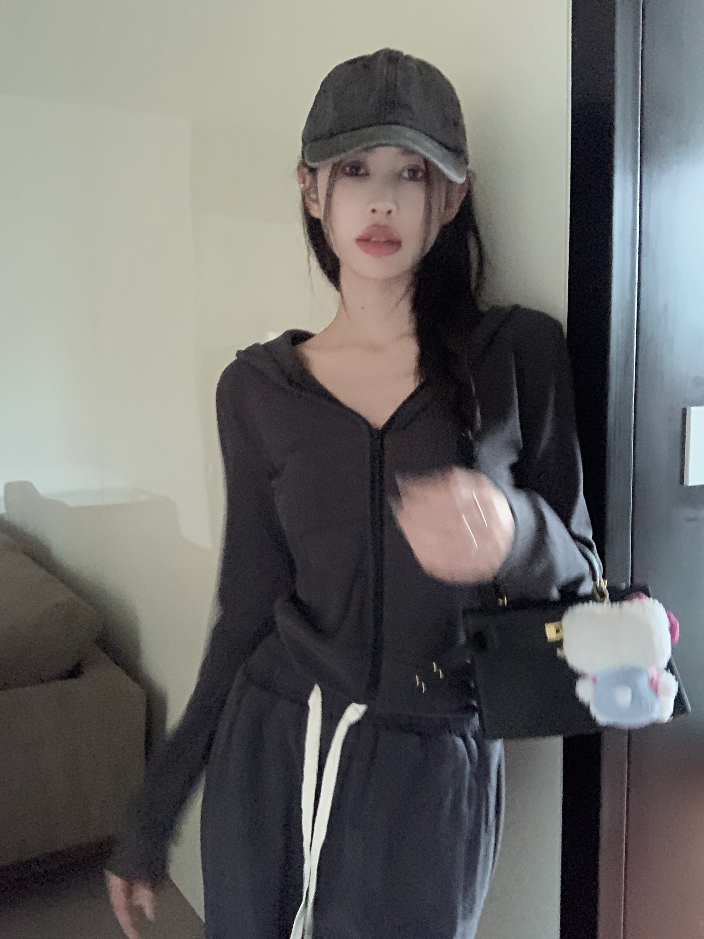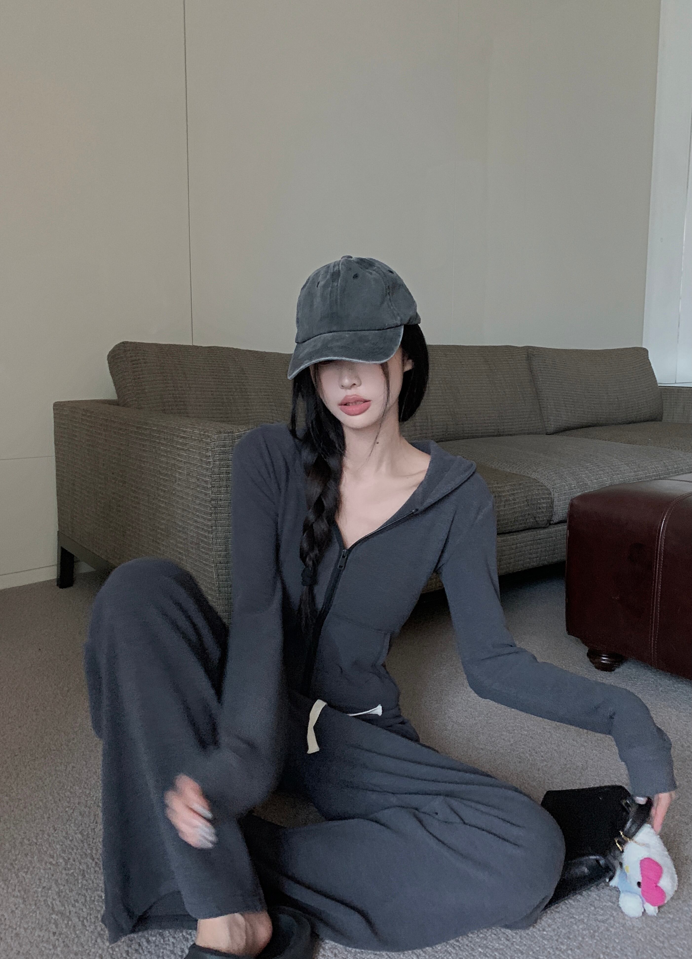 甘いホットガールスーツ秋ジッパーフード付きトップウエストルーズリラックスパンツツーピースセット服 大人ガーリー スウィート キュート カジュアル オータム 秋物