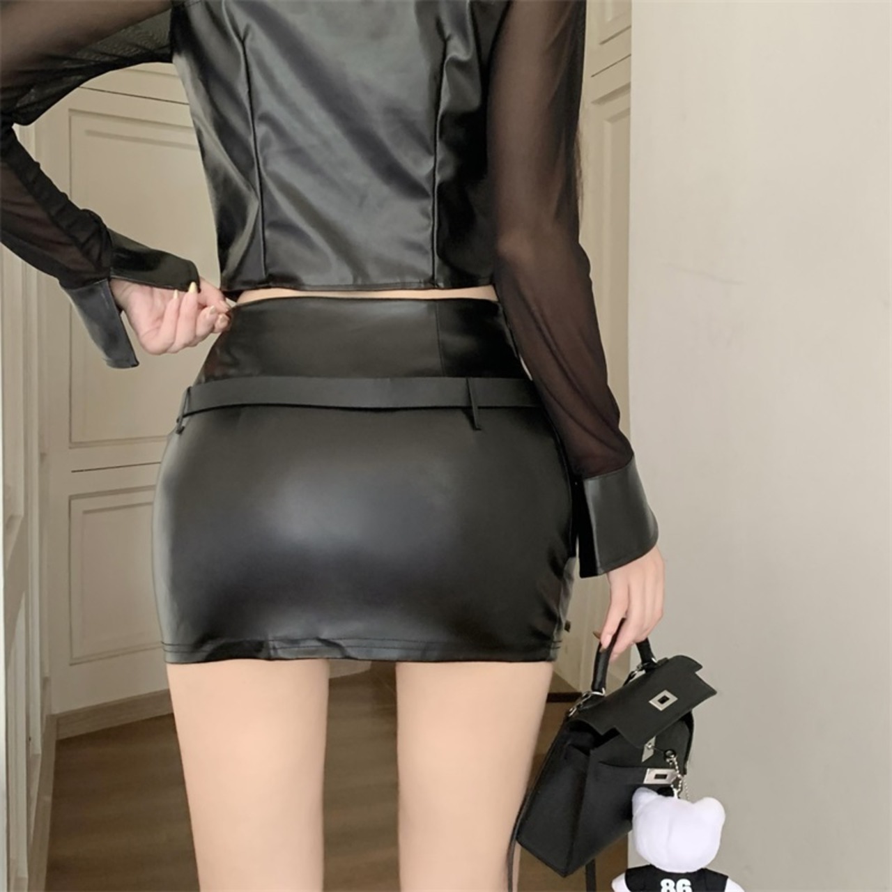甘いホットガールズスーツ秋ウエスト多彩ショートスカート PU スプライスジッパーシャツ 2 点セット服 大人ガーリー スウィート キュート カジュアル オータム 秋物