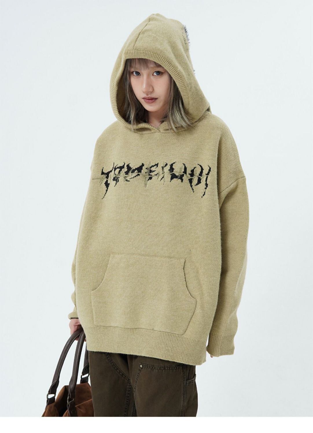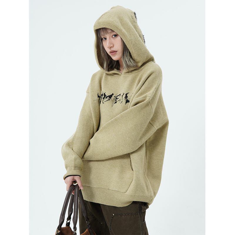 甘いホットガールストリートフード付きセーター秋と冬アメリカルーズニットプルオーバーセーター服 大人ガーリー スウィート キュート カジュアル オータム 秋物 ウィンター 冬物