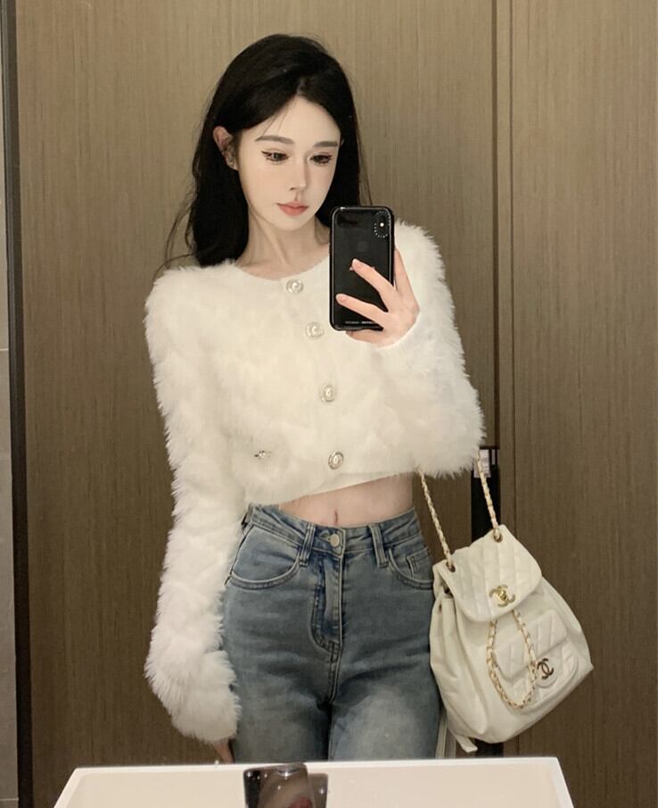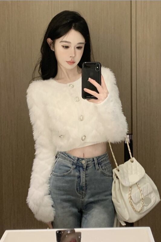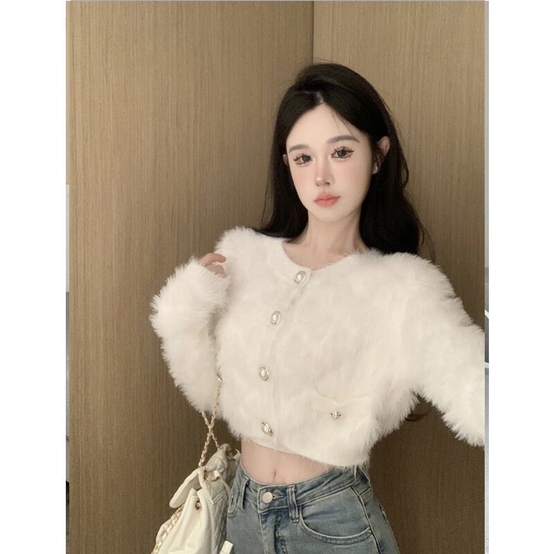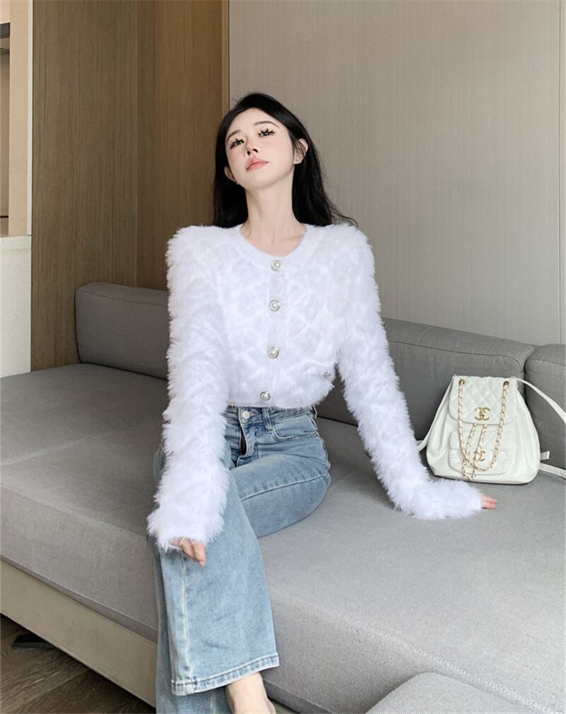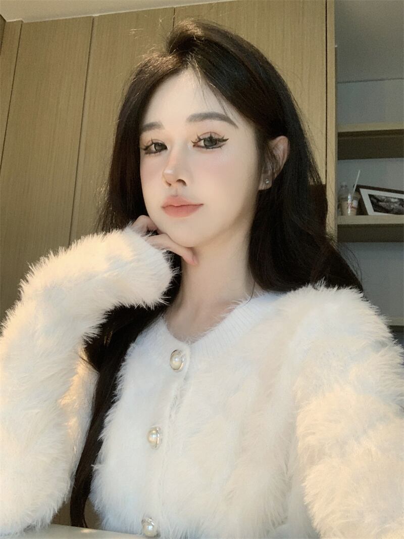 フレンチスタイル甘いホットガールショートニットジャケット秋ラウンドネックシングルブレストセーター服 大人ガーリー スウィート キュート カジュアル オータム 秋物 Oネック