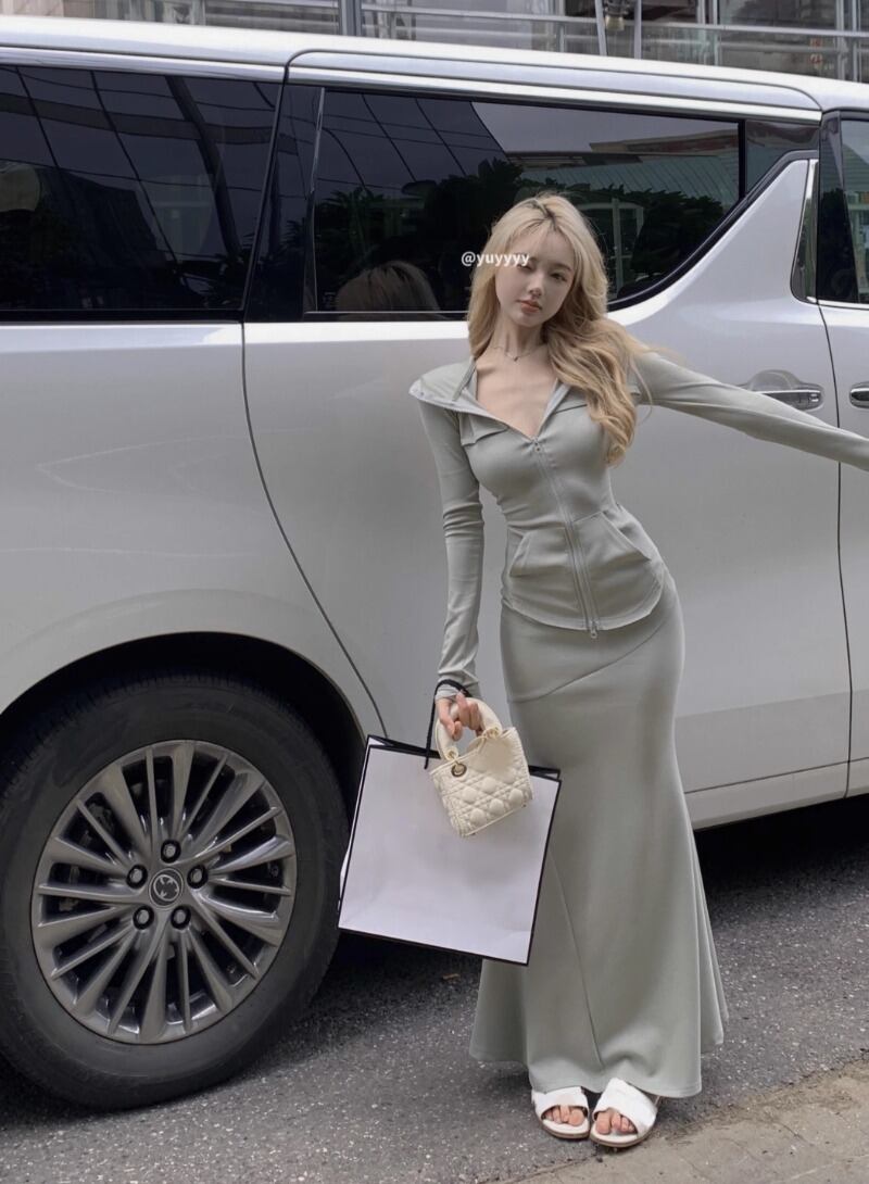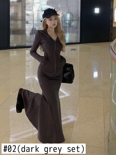ホットガールスーツ秋スリムフィットフード付きスウェットシャツコートマーメイドロングスカートツーピースセット服 オータム 秋物