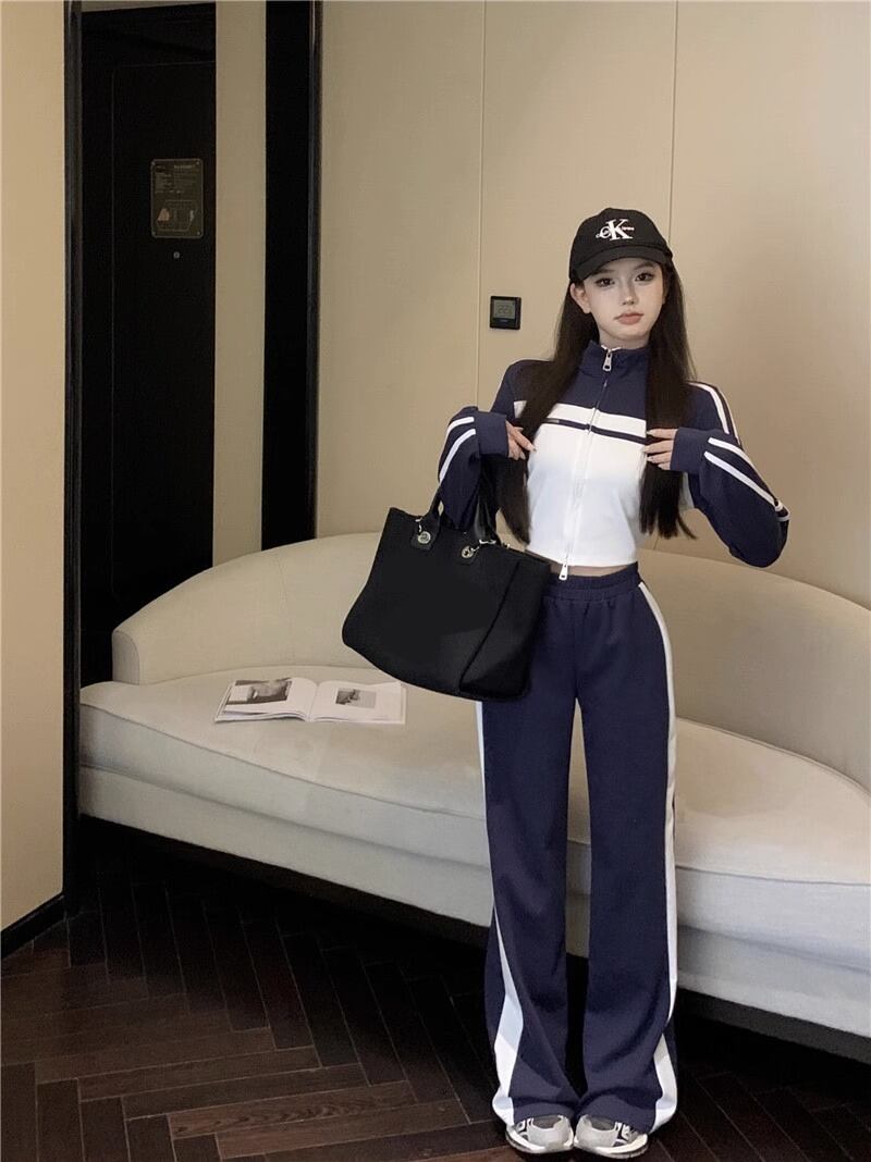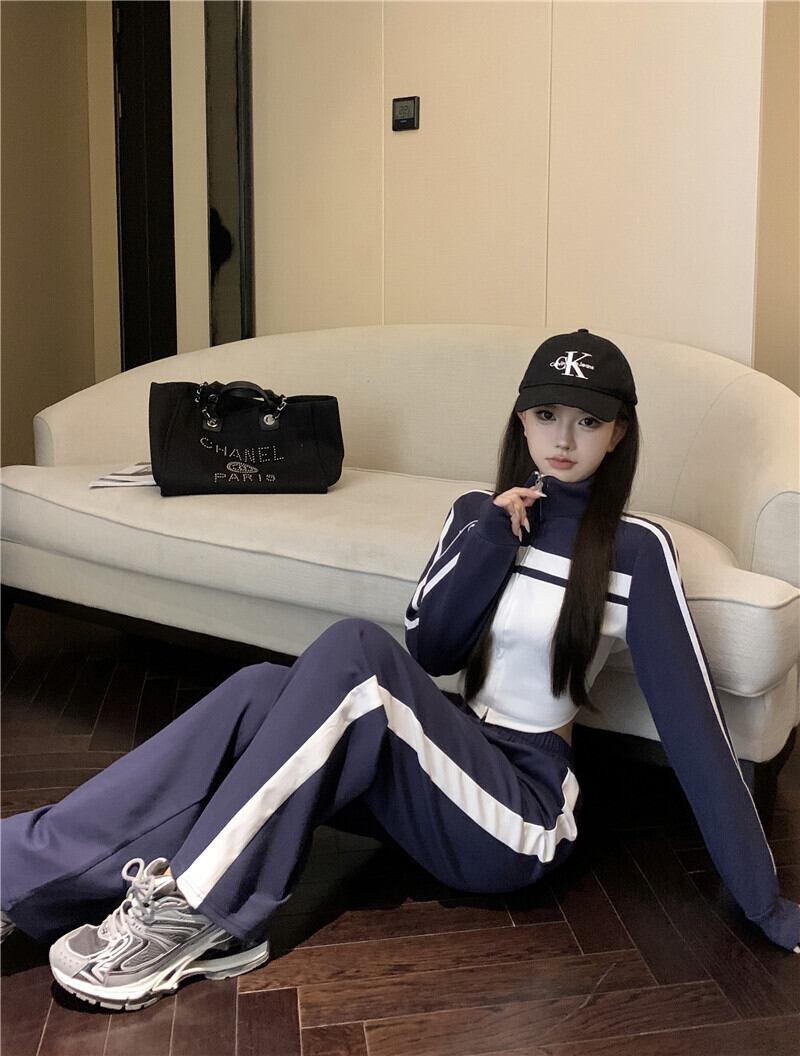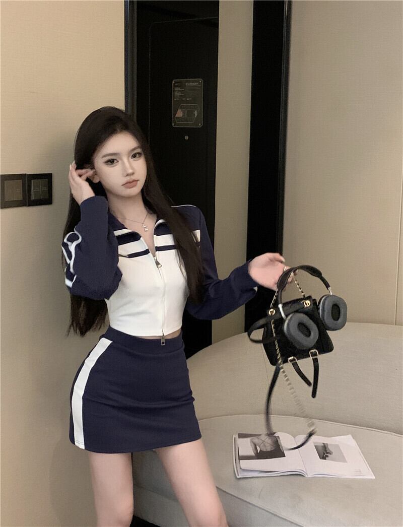 スタイル スポーツ スーツ レディース 秋 スリム フィット スタンドカラー コート ウエスト 万能 ショート スカート パンツ 2 点セット オータム 秋物