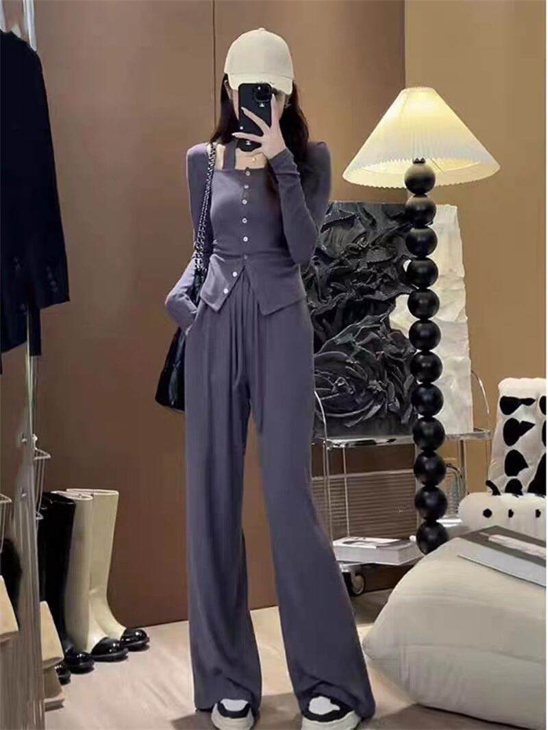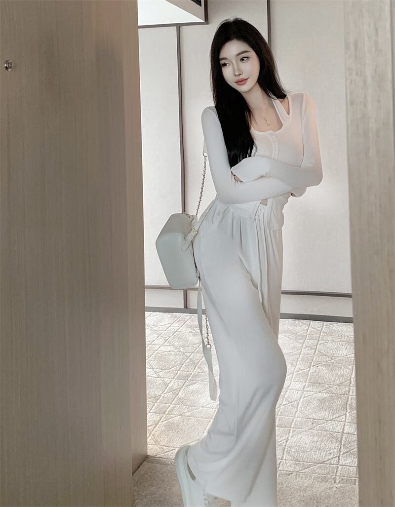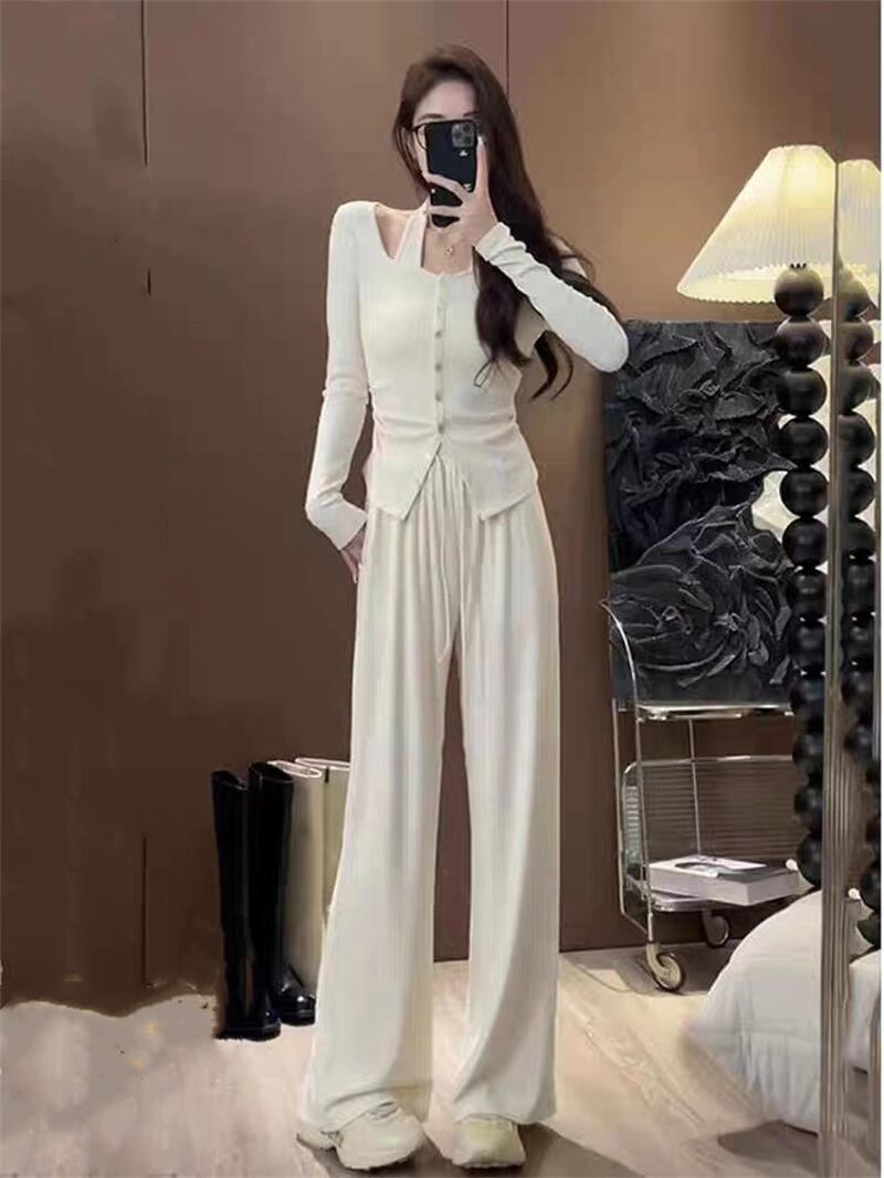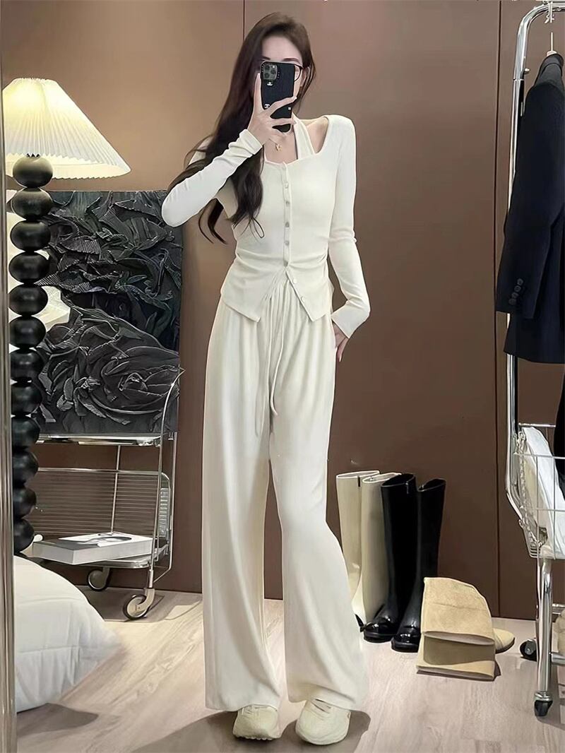ホットガールスーツ秋ホルターネックスリム長袖トップ多彩ウエストパンツツーピースセット服 ロング オータム 秋物