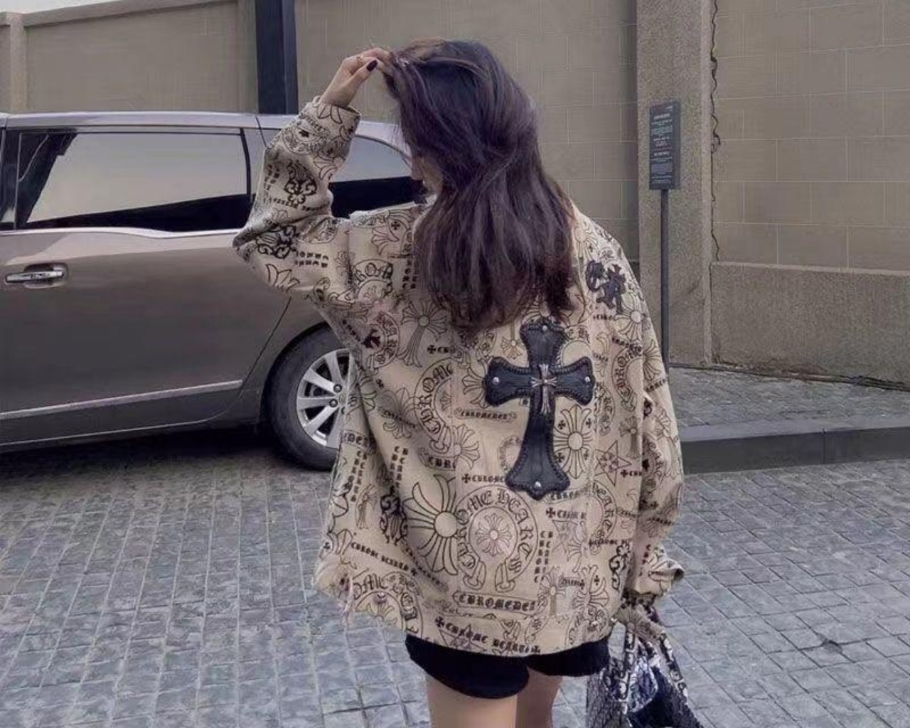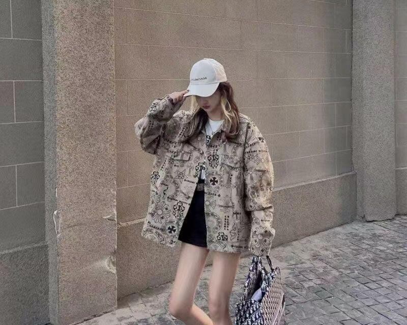甘いホットガール刺繍クロスデニムコート春ターンダウン襟プリントルーズフィットコート服 レッド 大人ガーリー スウィート キュート カジュアル スプリング 春物