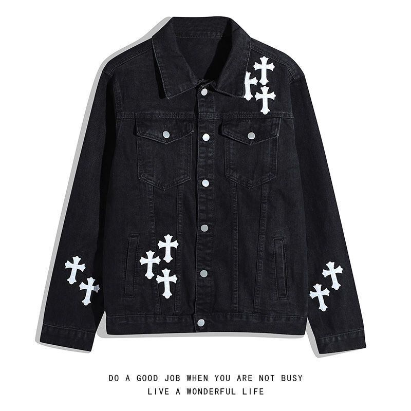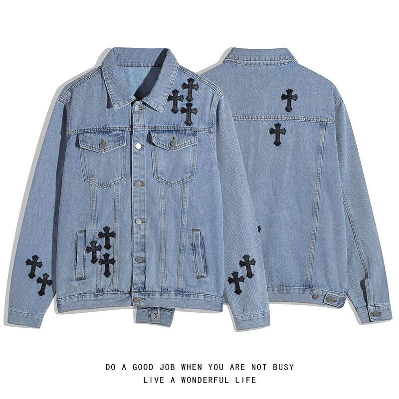 ホットガールデニムコート春と秋クロスステッカー布洗浄古いデニムコートルーズジャケット服 スプリング 春物 オータム 秋物