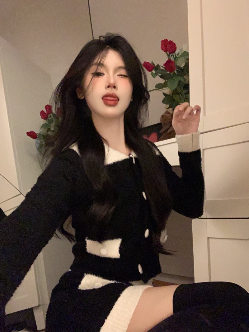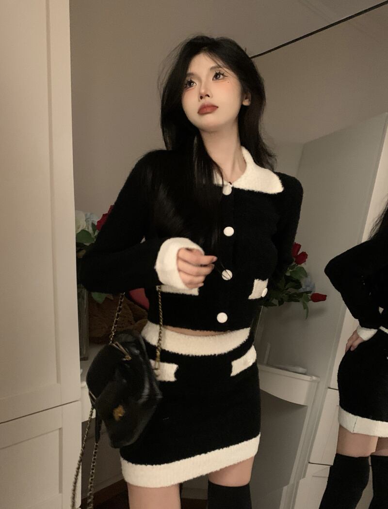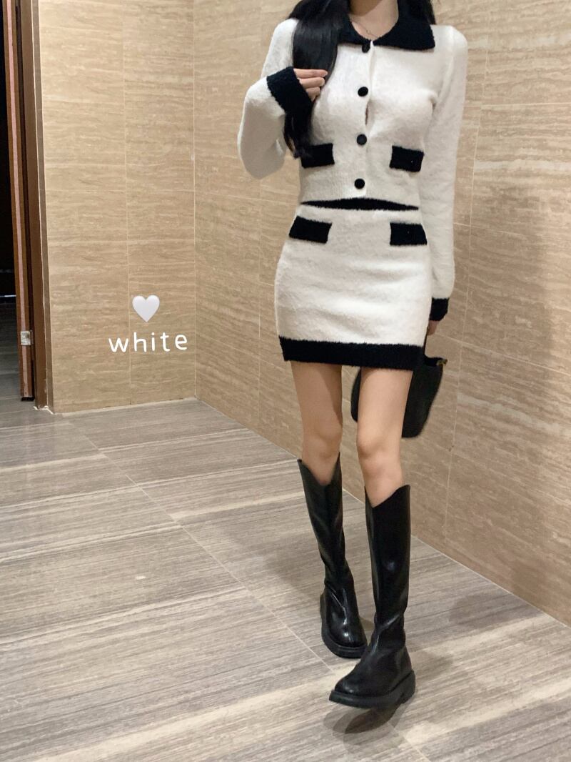 甘いホット豪華スーツ秋長袖ニットジャケットウエストスカートツーピースセット服 ロング 大人ガーリー スウィート キュート カジュアル オータム 秋物