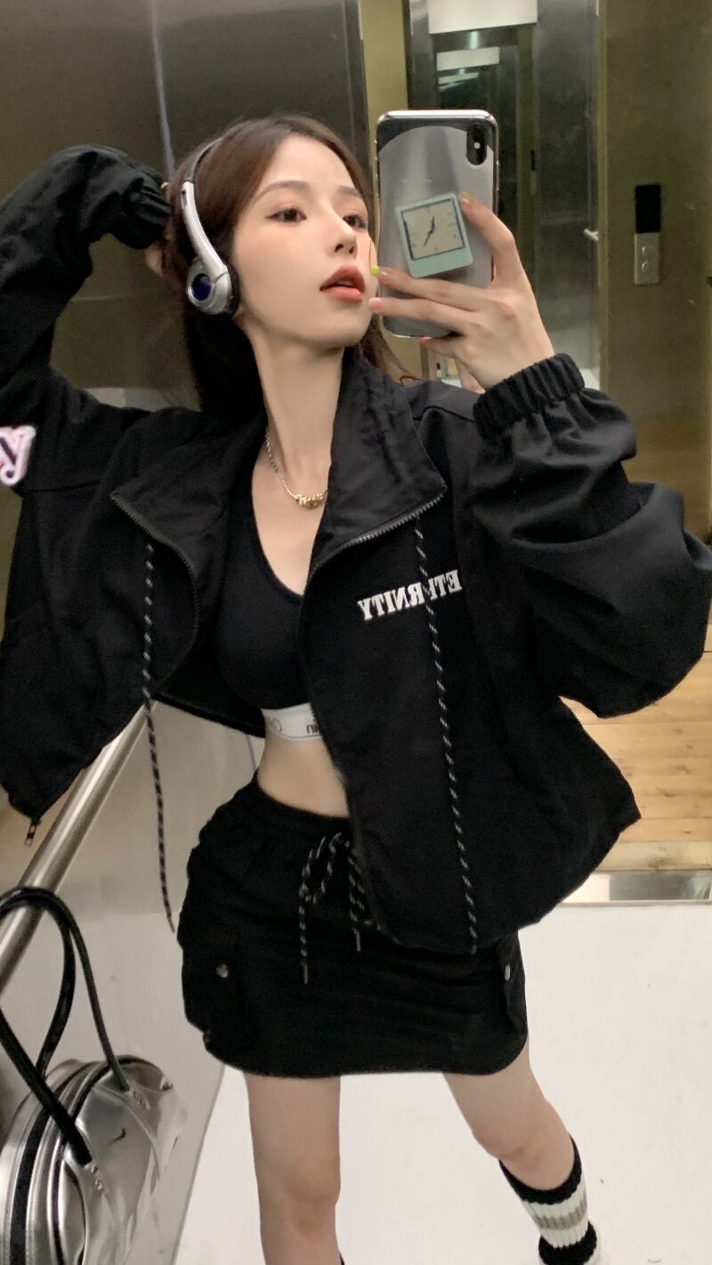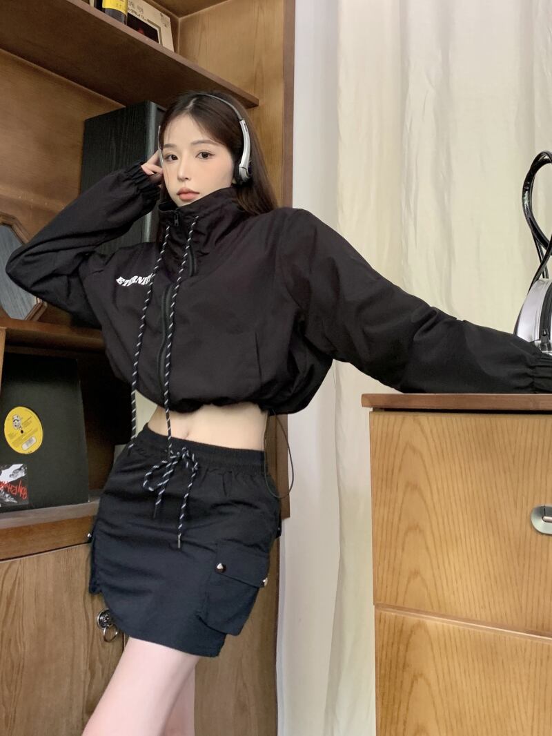 ホットガールスーツ夏スポーツ長袖ショートジャケットトップウエストカーゴスカートツーピースセット服 ロング サマー 夏物