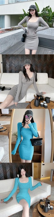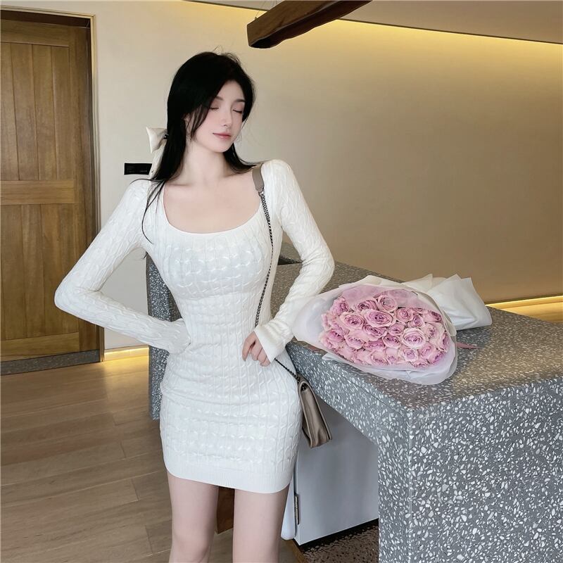 フランス純粋セクシーホットガールスリムラップヒップドレス秋長袖下敷きニットドレス服 ロング オータム 秋物 ピュア ソリッドカラー