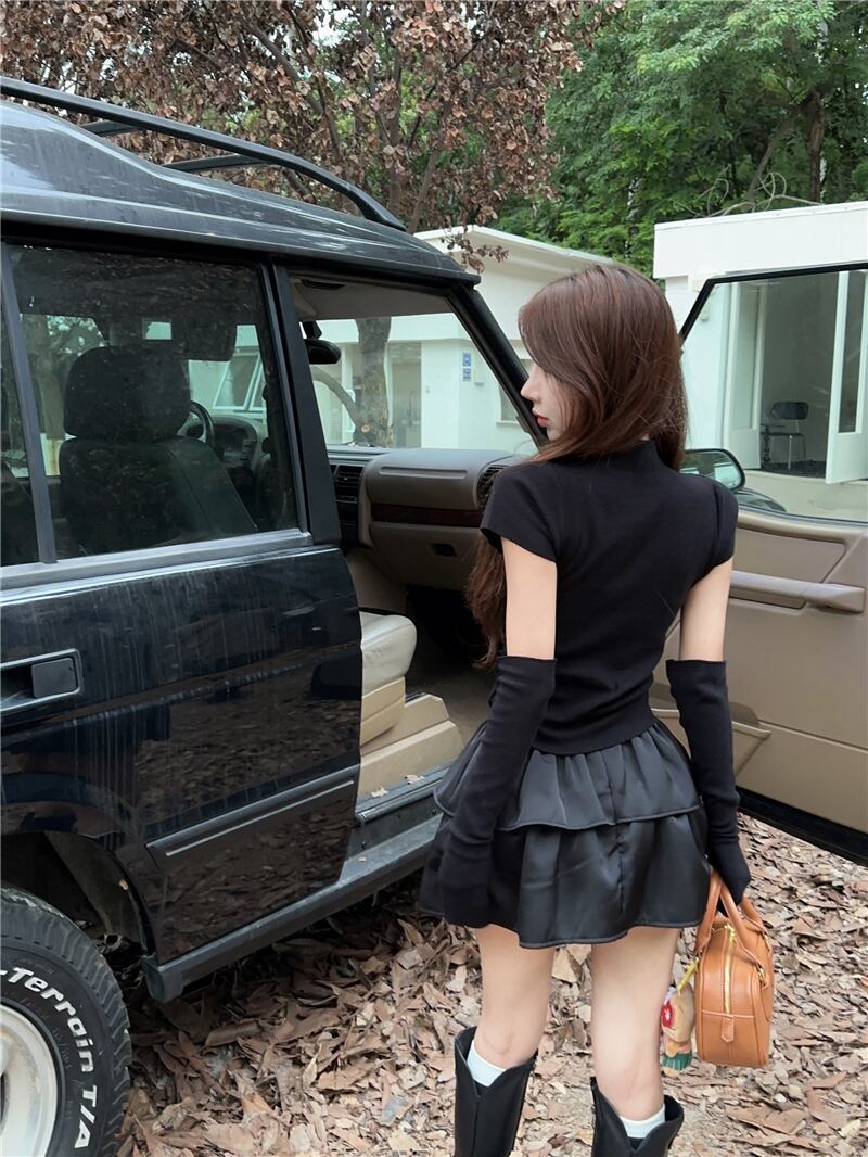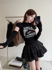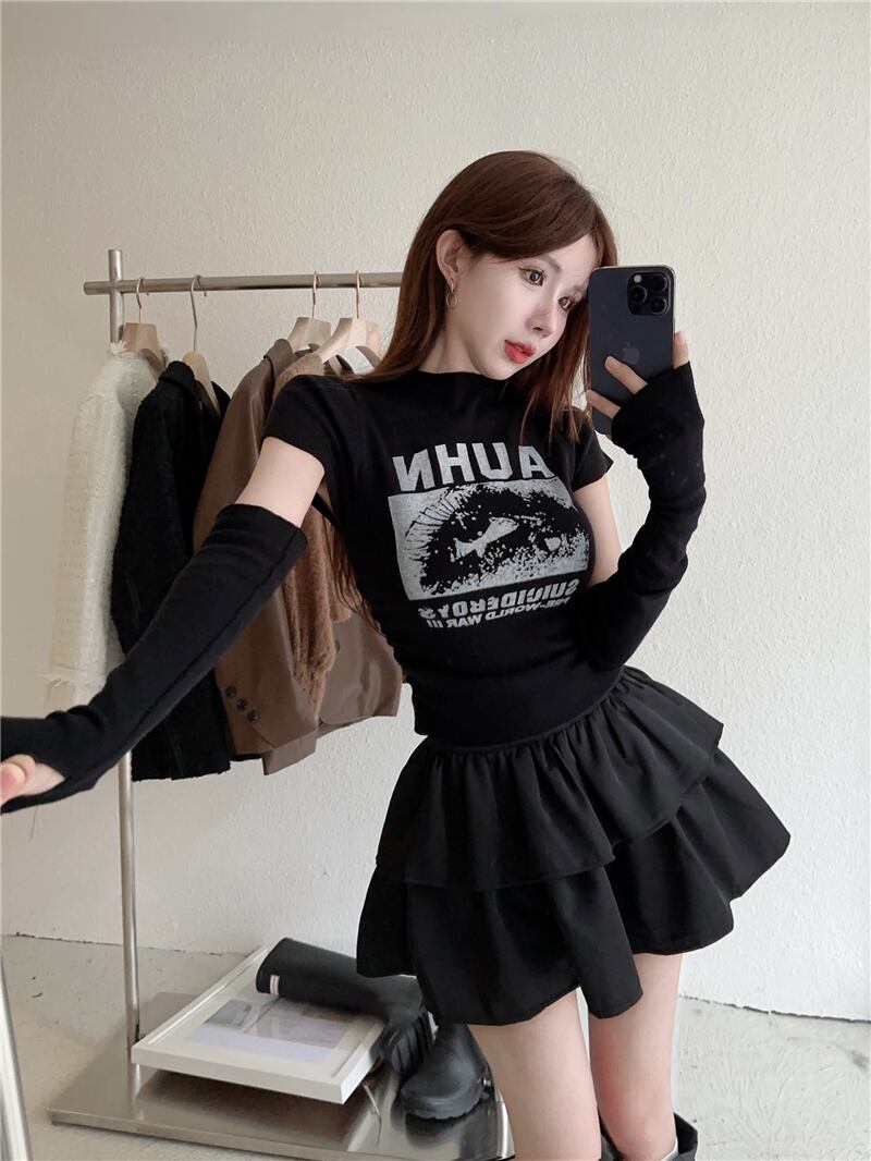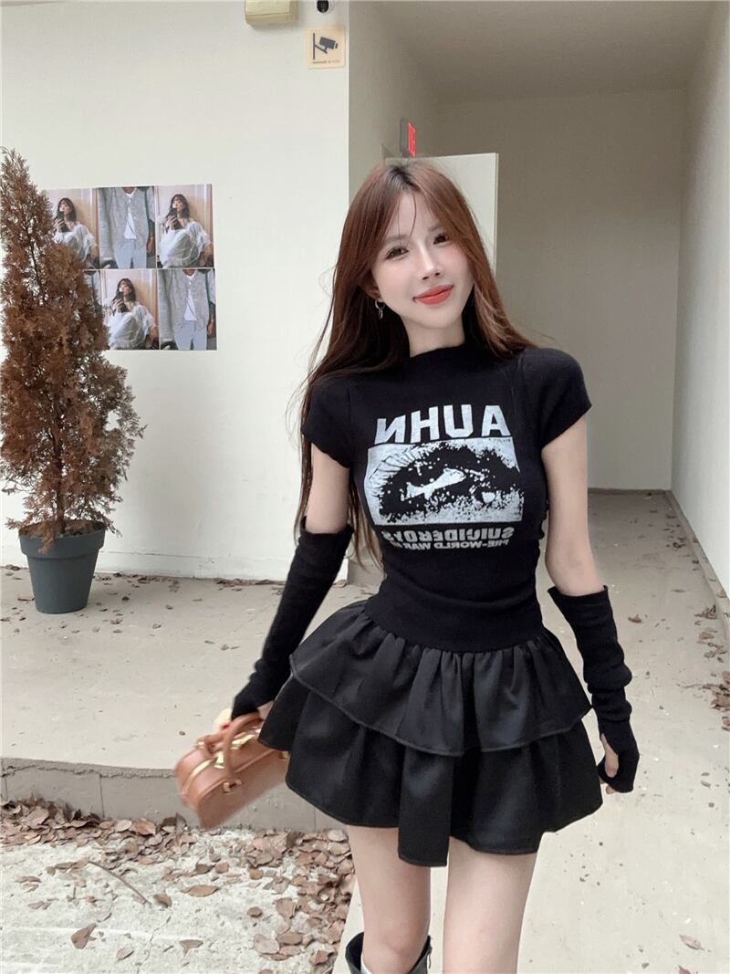 甘いホットガールズスーツ秋レタープリントショート Tシャツウエストプリーツショートスカート 2 点セット服 大人ガーリー スウィート キュート カジュアル オータム 秋物