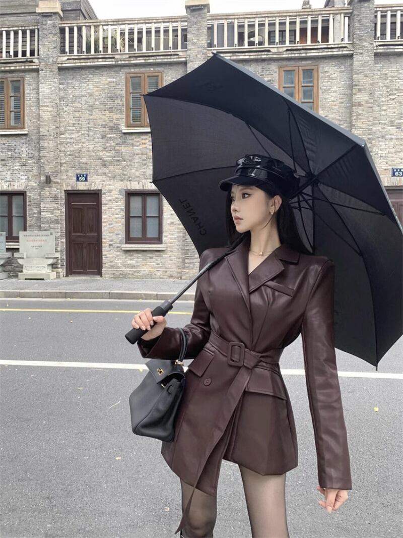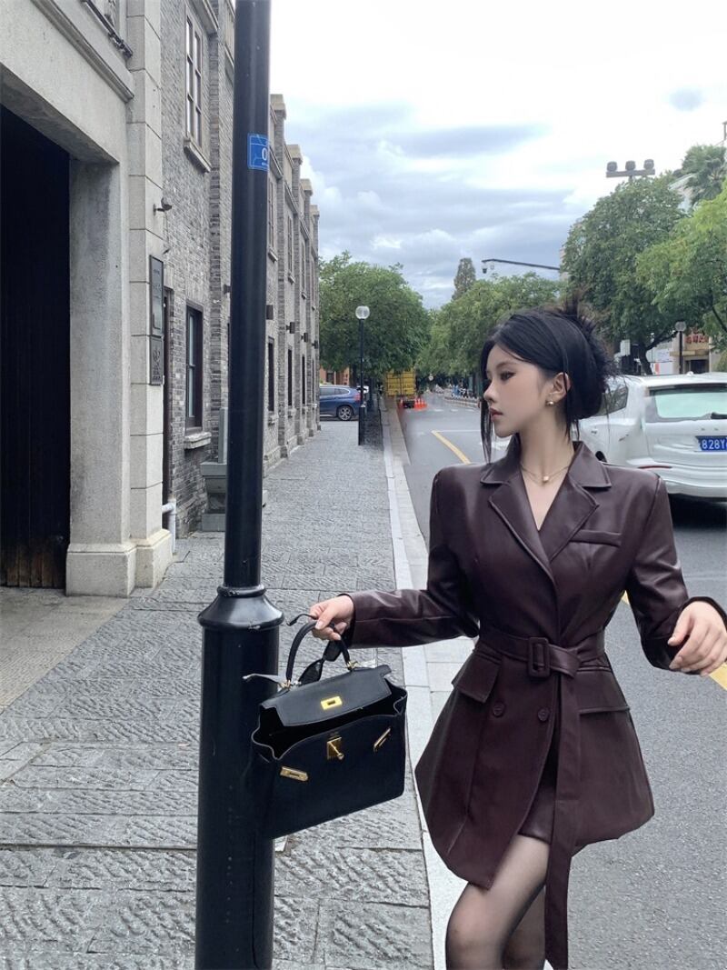 フレンチスイートホットガール多用途レザーコート冬長袖PUレザーレースアップトレンチジャケット服 ロング 大人ガーリー スウィート キュート カジュアル ウィンター 冬物