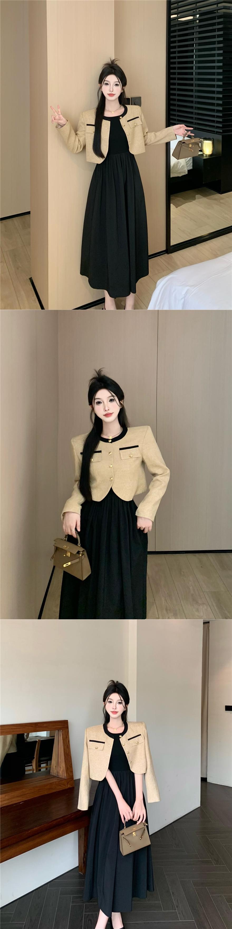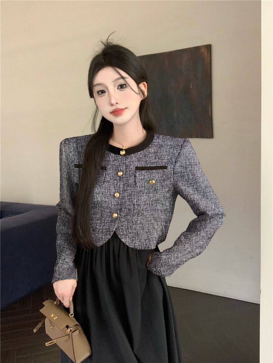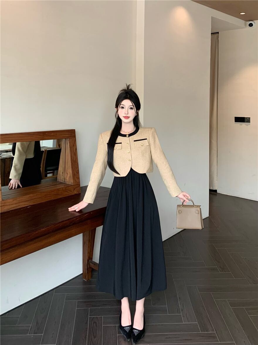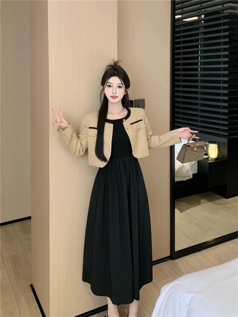 Sweet Girl スーツ レディース 秋 ラウンドネック 長袖 コート ラウンドネック スリムフィット ドレス 2点セット 服 ロング 大人ガーリー スウィート キュート カジュアル オータム 秋物 Oネック