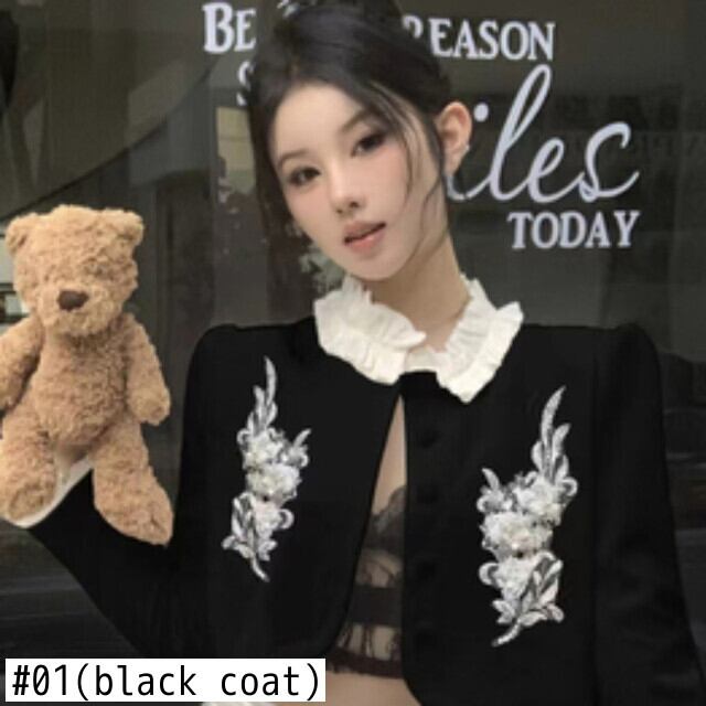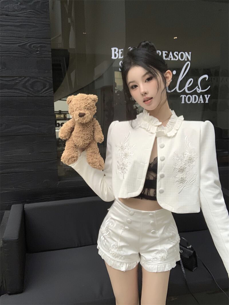 スタイルスイートホットガールスーツ秋花長袖コートウエストショーツツーピースセット服 ロング 大人ガーリー スウィート キュート カジュアル オータム 秋物 ブルマー フラワーデザイン