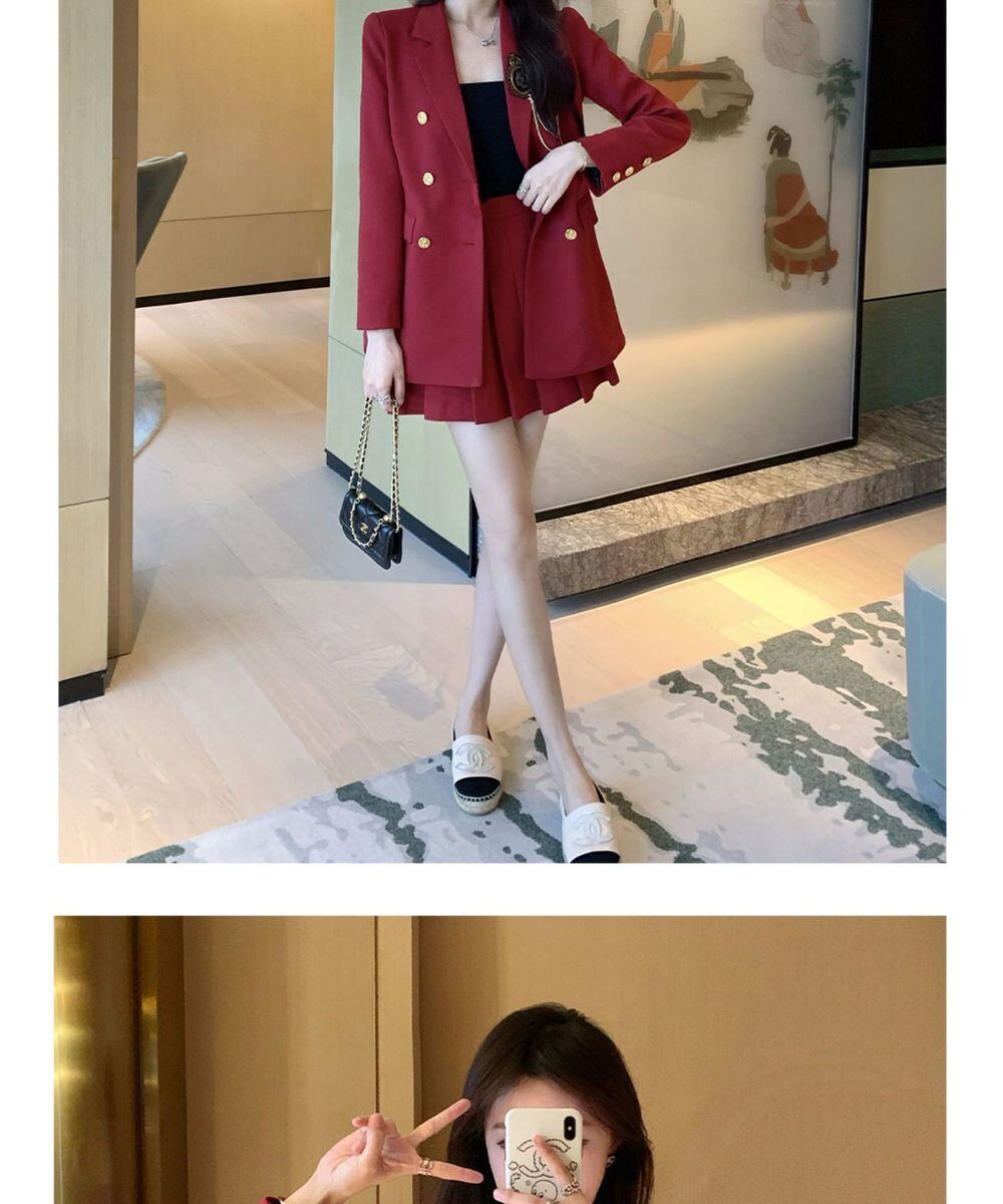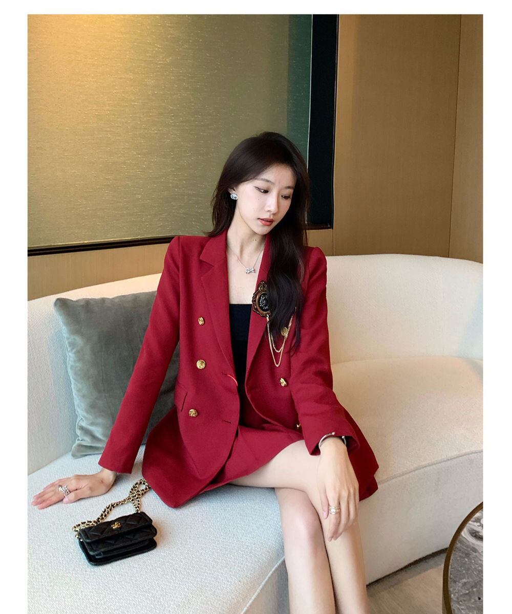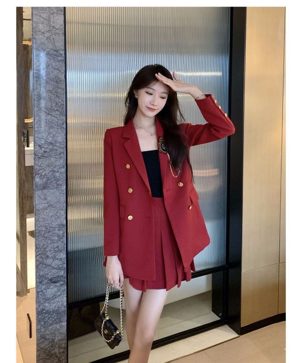 Sweet Girl レッドスーツ レディース 秋冬 ダブルブレスト コート Aライン プリーツ ミニスカート ツーピースセット 服 大人ガーリー スウィート キュート カジュアル オータム 秋物 ウィンター 冬物