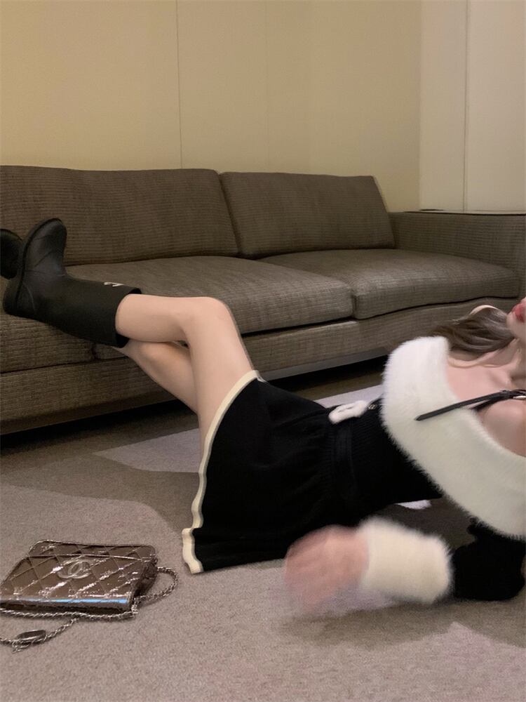スタイルスイートホットガールニットドレス秋/冬スリムフィットスラッシュネックストラップショートドレス服 大人ガーリー スウィート キュート カジュアル オータム 秋物 ウィンター 冬物