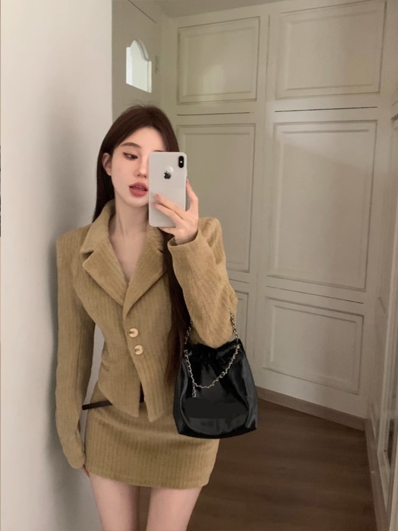 オフィスレディ スーツ レディース 秋 コーヒー スリムフィット スーツ コート ウエスト ミニ スカート 2点セット 服 オータム 秋物 会社 学校 通勤や通学にも