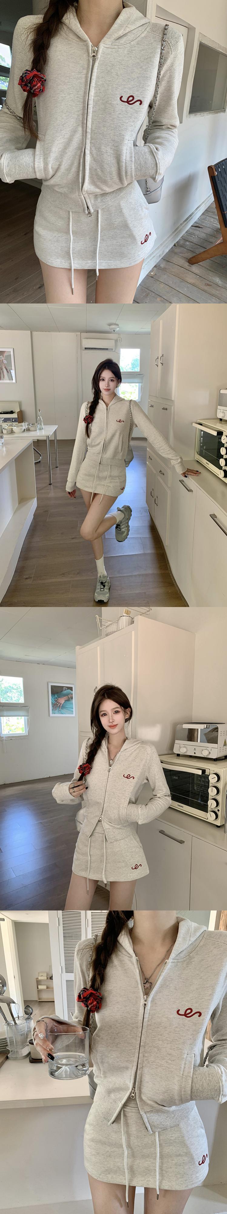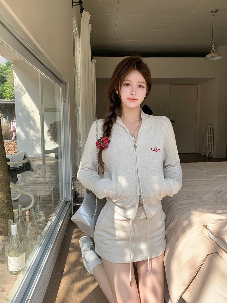 スイートガールスーツ秋ダブルジッパーアメリカンショートフード付きスウェットシャツカーディガンコートラップヒップミニスカートツーピースセット 大人ガーリー スウィート キュート カジュアル オータム 秋物