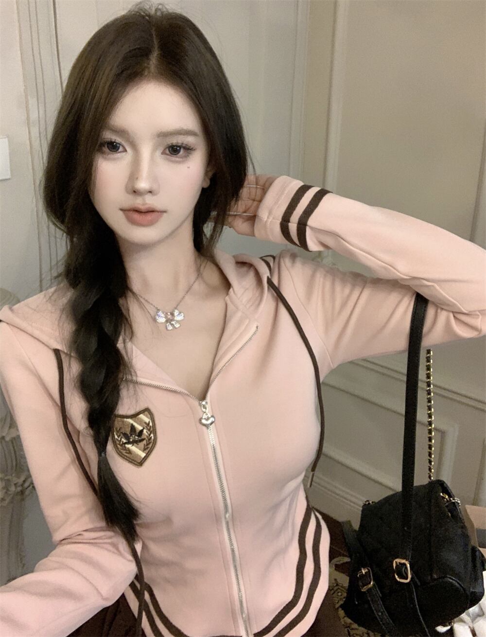 プレッピースタイルスウィートガールスーツレディース秋ジッパーフード付きコートAラインミニスカートツーピースセット服 大人ガーリー キュート カジュアル オータム 秋物