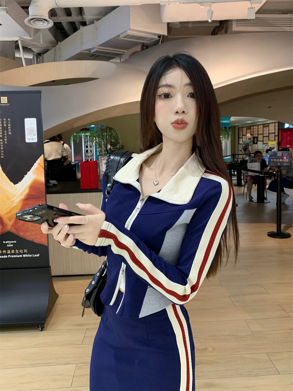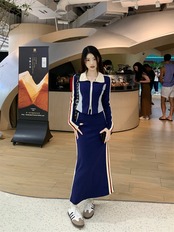 スイートホットガールスーツ秋スタンドカラースリムトレーナーウエストロングスカートツーピースセット服 大人ガーリー スウィート キュート カジュアル オータム 秋物