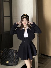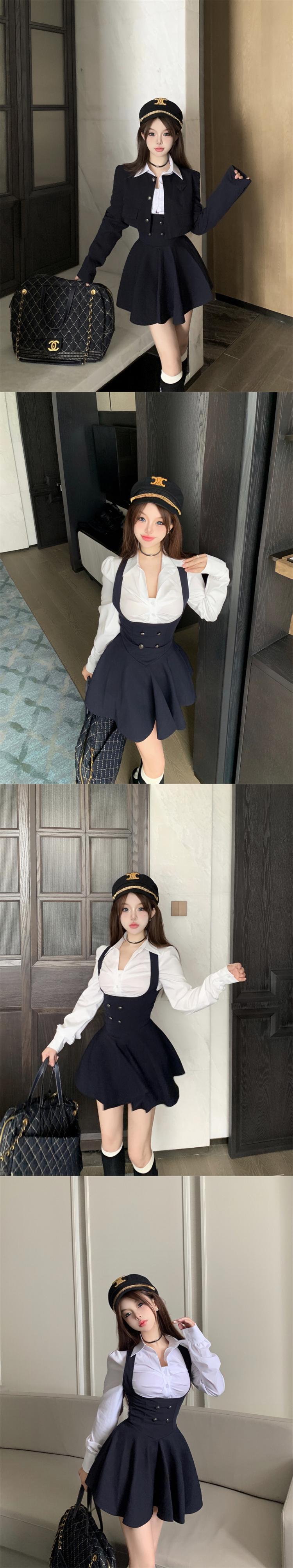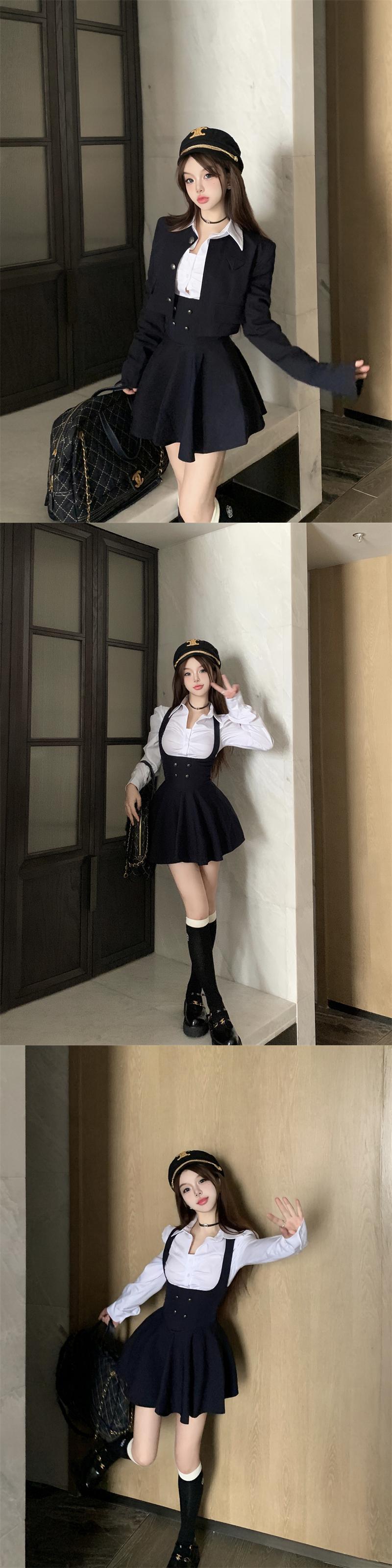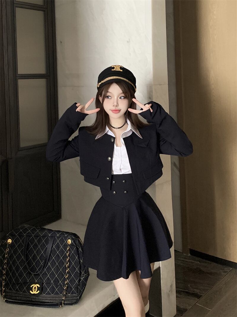 スイートガールズスタイルスーツ秋ショートコートウエストプリーツスカート白シャツ 3 点セット服 ホワイト 大人ガーリー スウィート キュート カジュアル オータム 秋物