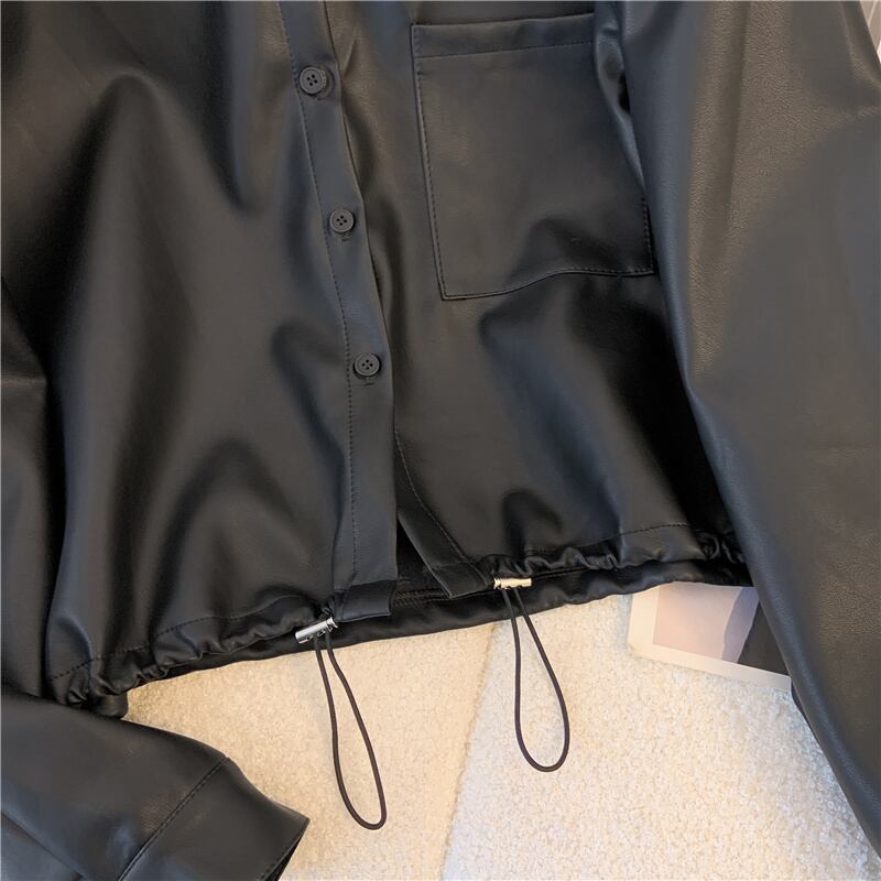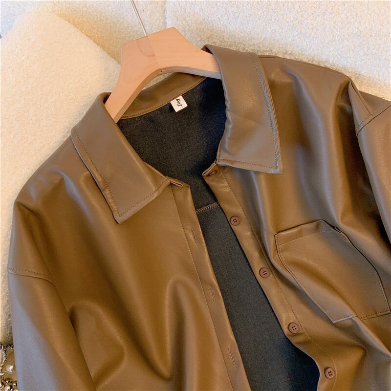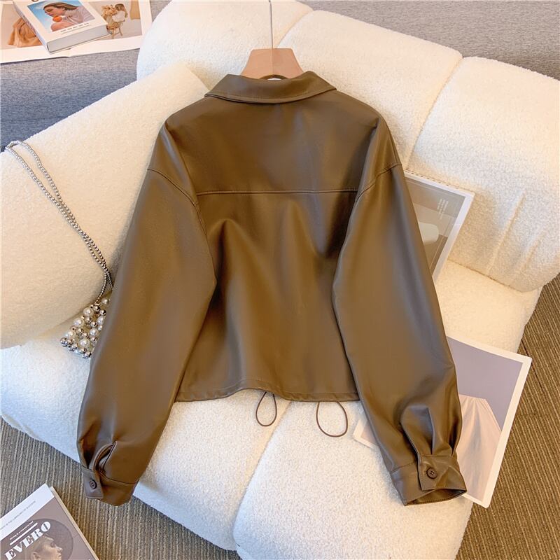 甘いホットガールブラウンオートバイレザージャケット春ショートルーズフィット PU ジャケット長袖トップ ロング 大人ガーリー スウィート キュート カジュアル スプリング 春物