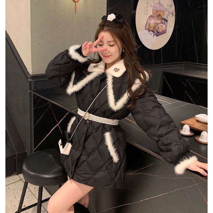 スタイルスウィートガールレトロターンダウン襟コットンジャケット冬ルースファーエッジコットンジャケット服 大人ガーリー キュート カジュアル ウィンター 冬物