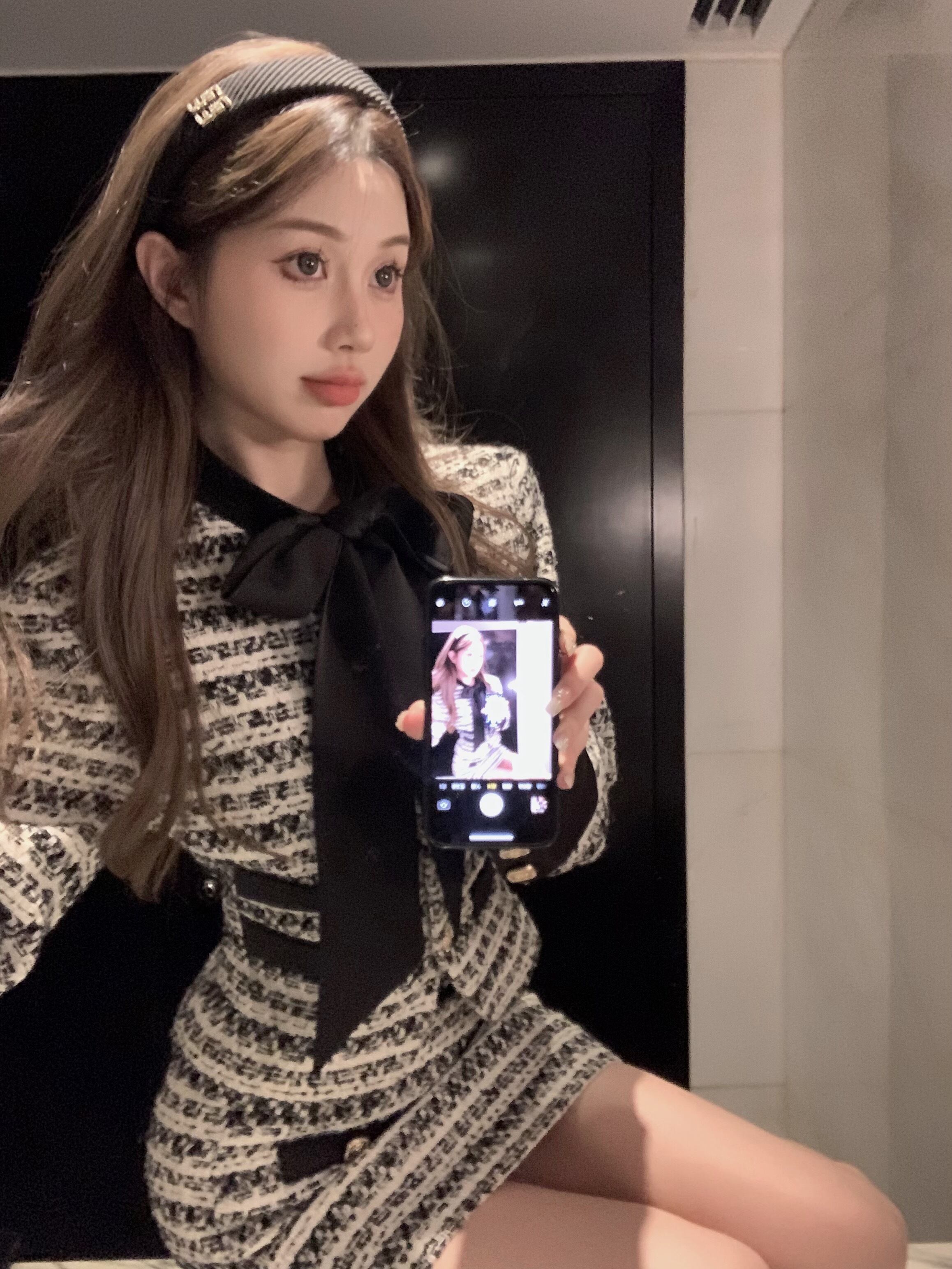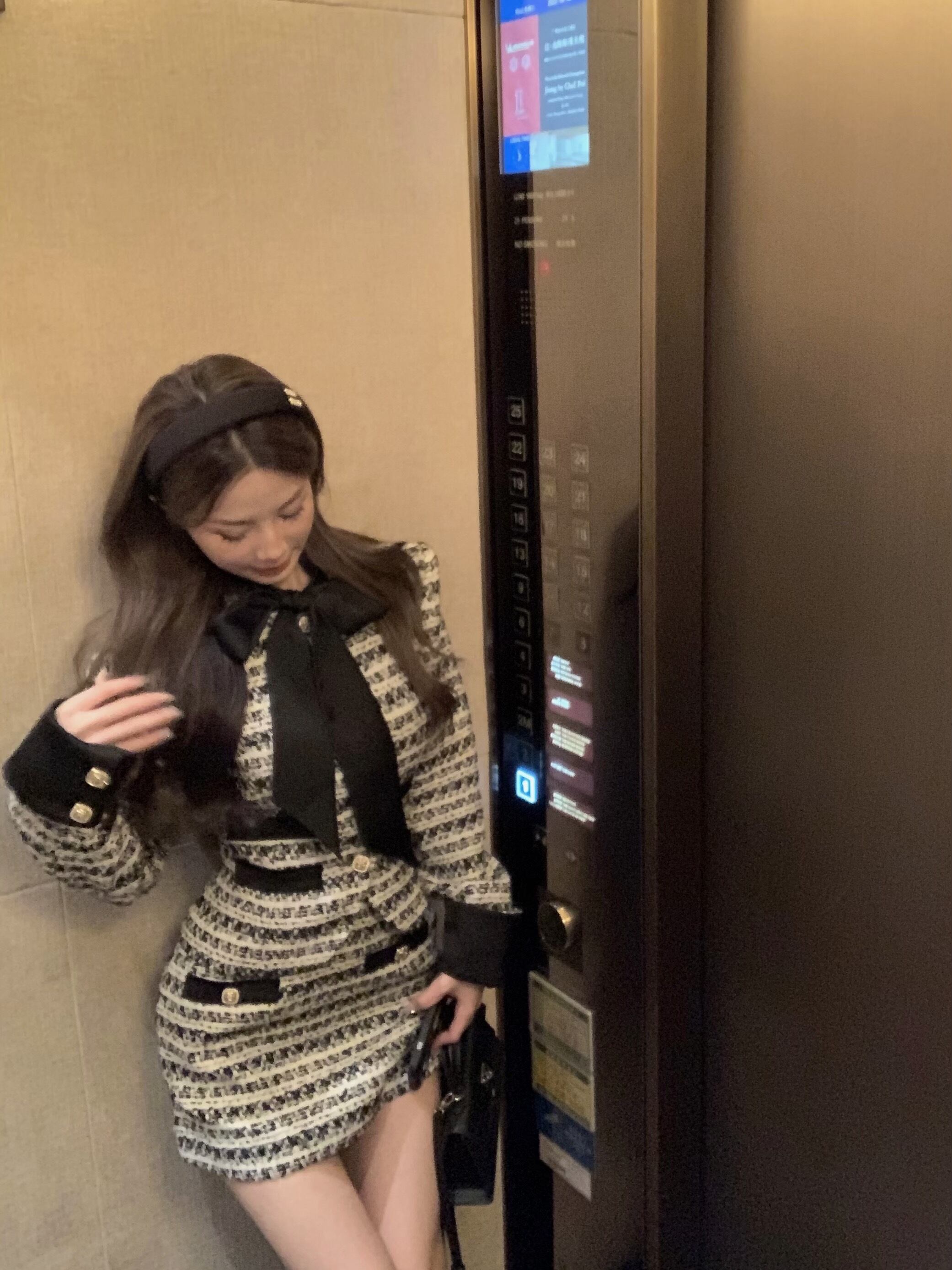 スイートホットガールツイードスーツ秋長袖ショートジャケットウエストミニスカートツーピースセット服 ロング 大人ガーリー スウィート キュート カジュアル オータム 秋物