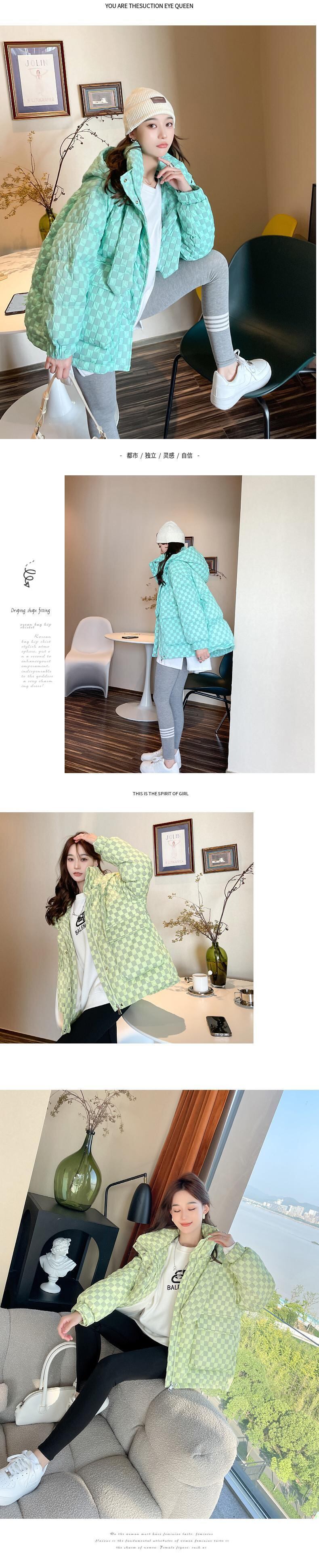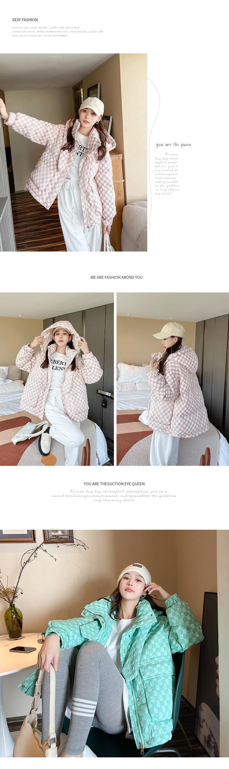 スタイルスウィートガールダウンジャケット冬ホワイトダックダウンショートチェスボードチェック柄肥厚フード付きダウンジャケット 大人ガーリー キュート カジュアル ウィンター 冬物