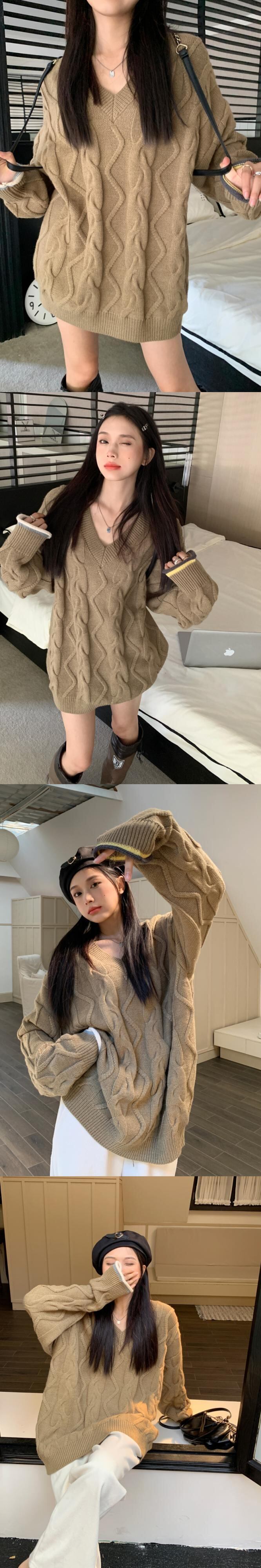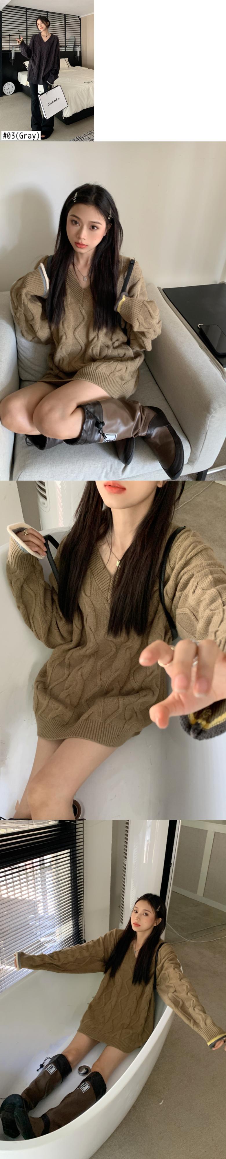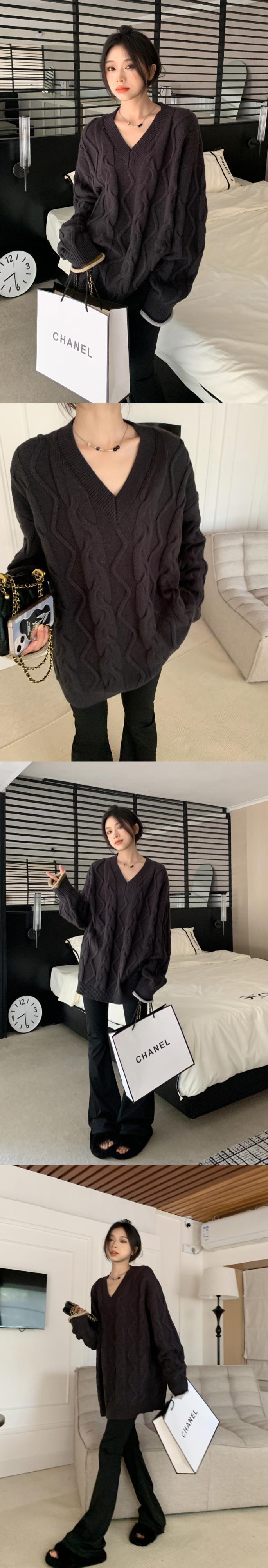 甘いホットガール V ネックニットプルオーバー秋長袖ソフトルーズミッドレングスセーター服 ロング 大人ガーリー スウィート キュート カジュアル オータム 秋物 Vネック