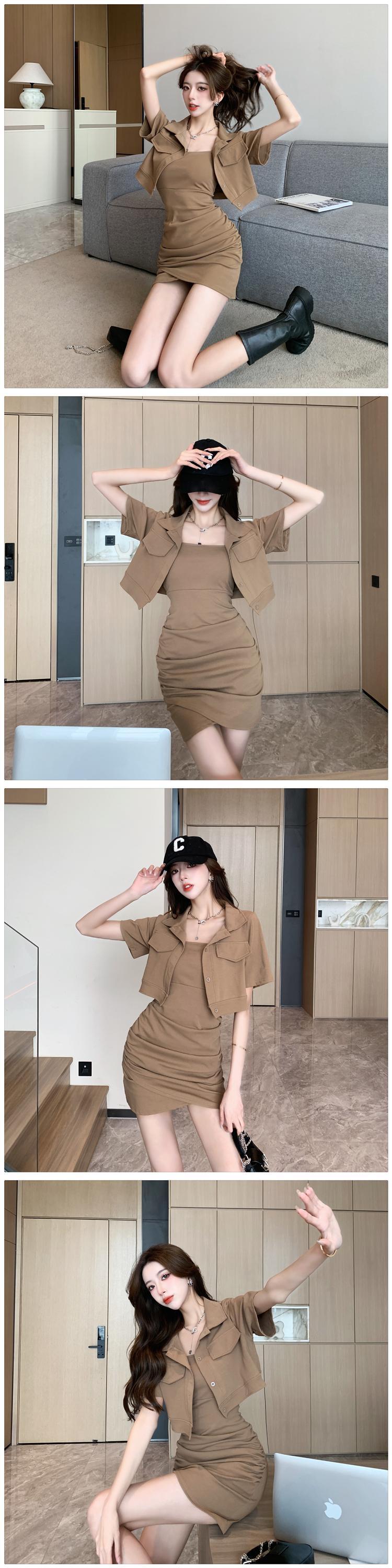 甘いホットガールスーツサマーバッグ尻スリムストラップドレスショートカーディガンジャケット 2 点セット服 大人ガーリー スウィート キュート カジュアル 夏物