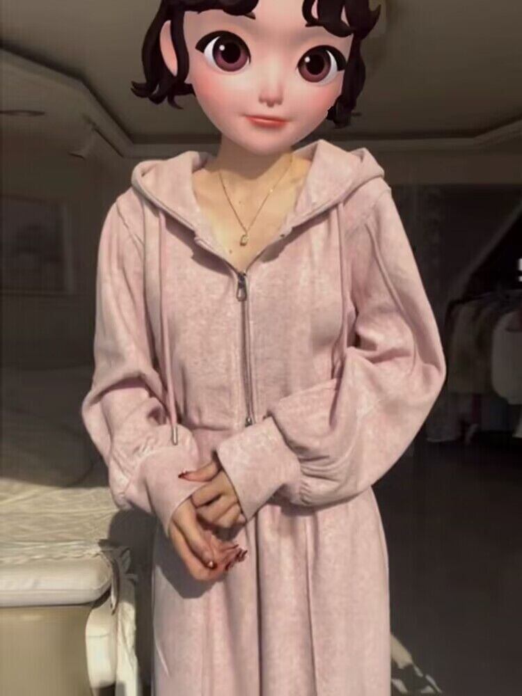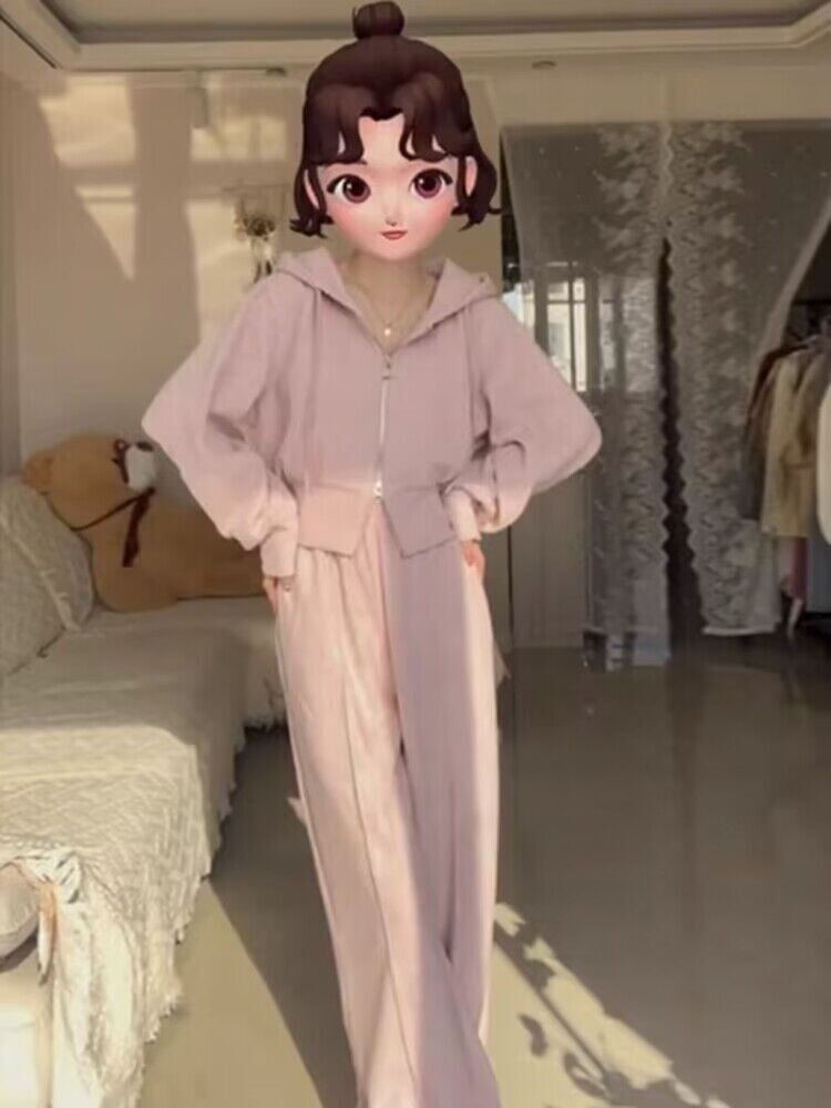 ホットガールスポーツスーツ秋フード付き長袖セータージャケットワイド脚パンツ 2 点セット服 ロング オータム 秋物 ワイドレッグ ワイドパンツ