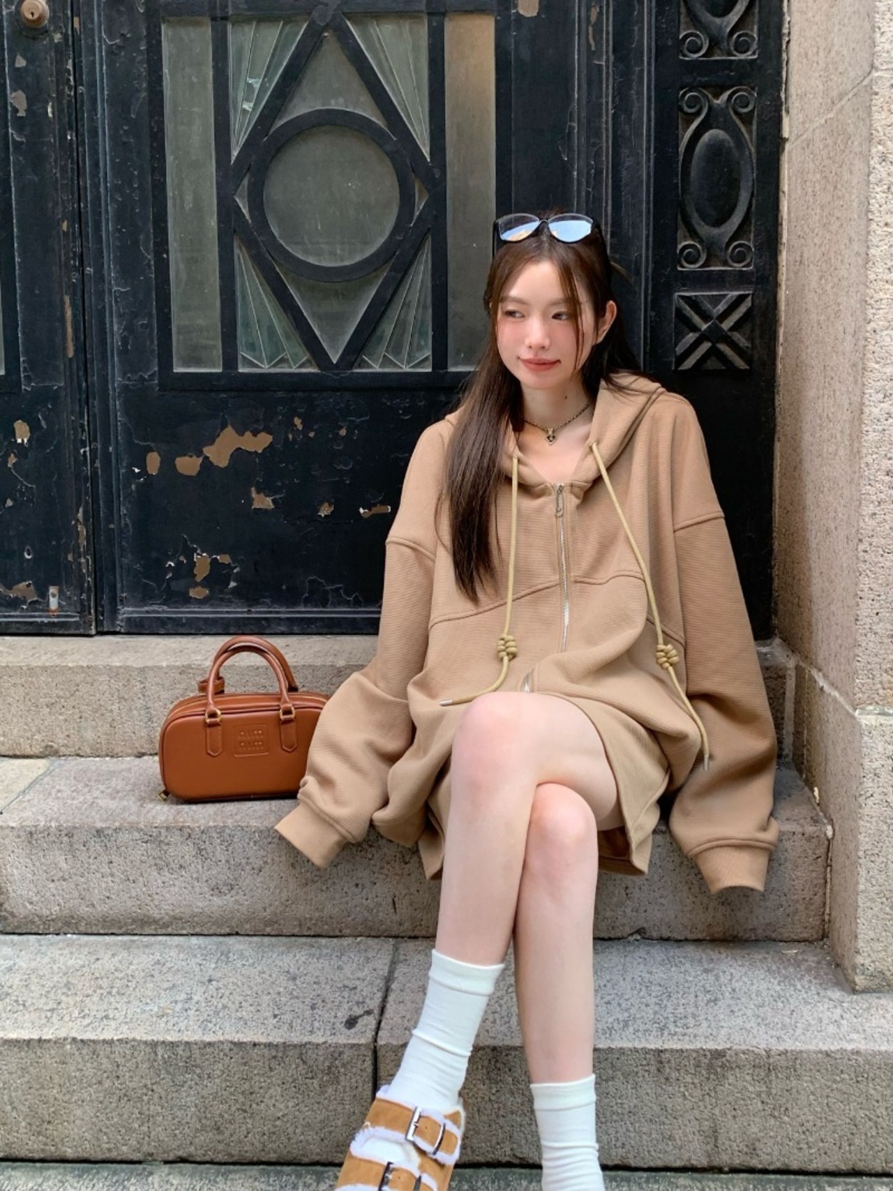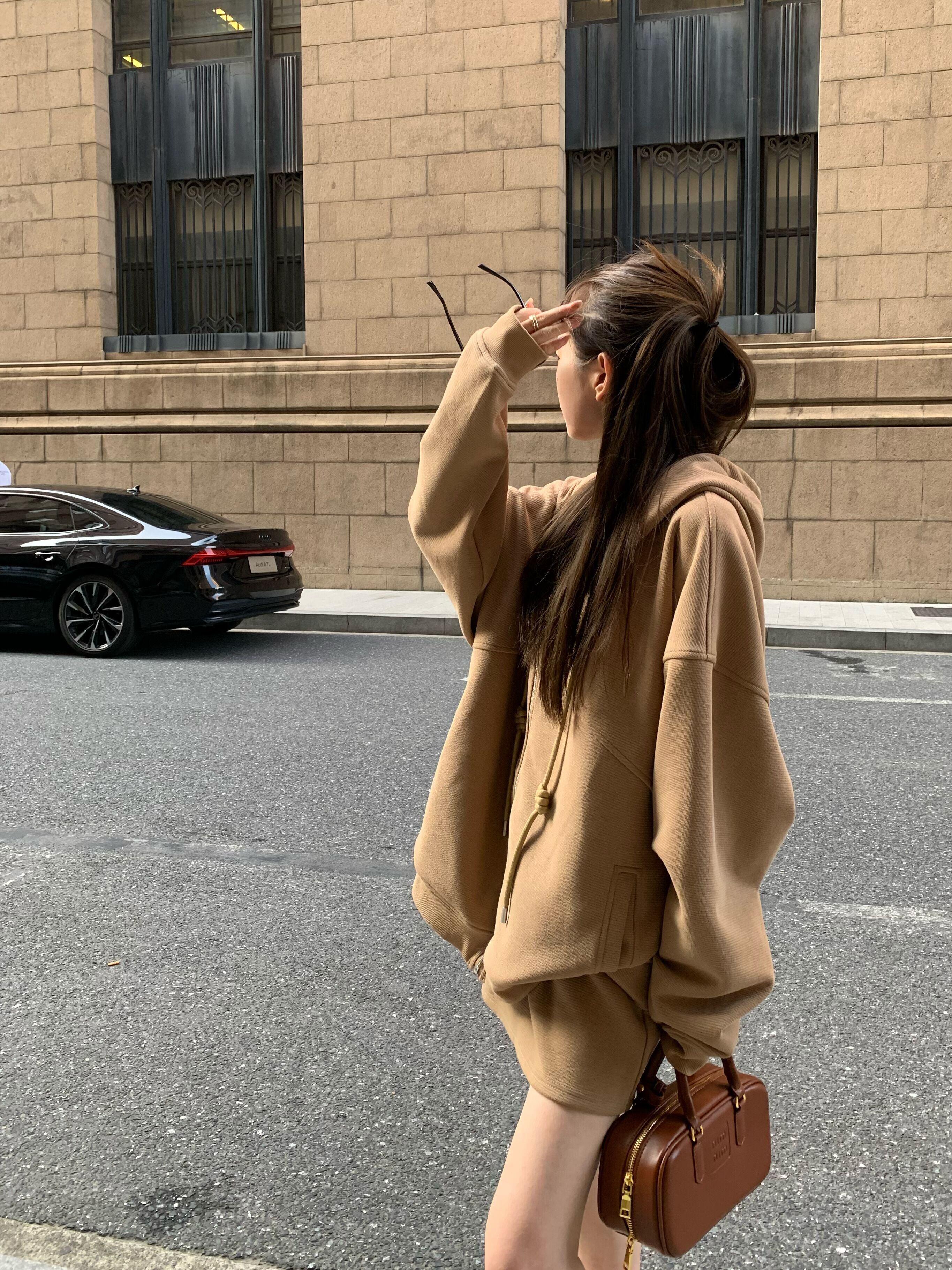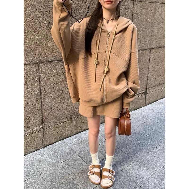 ホットガールスーツ秋フード付きスウェットシャツルーズコートウエストミニスカートツーピースセット服 オータム 秋物