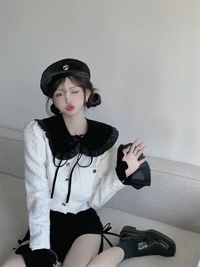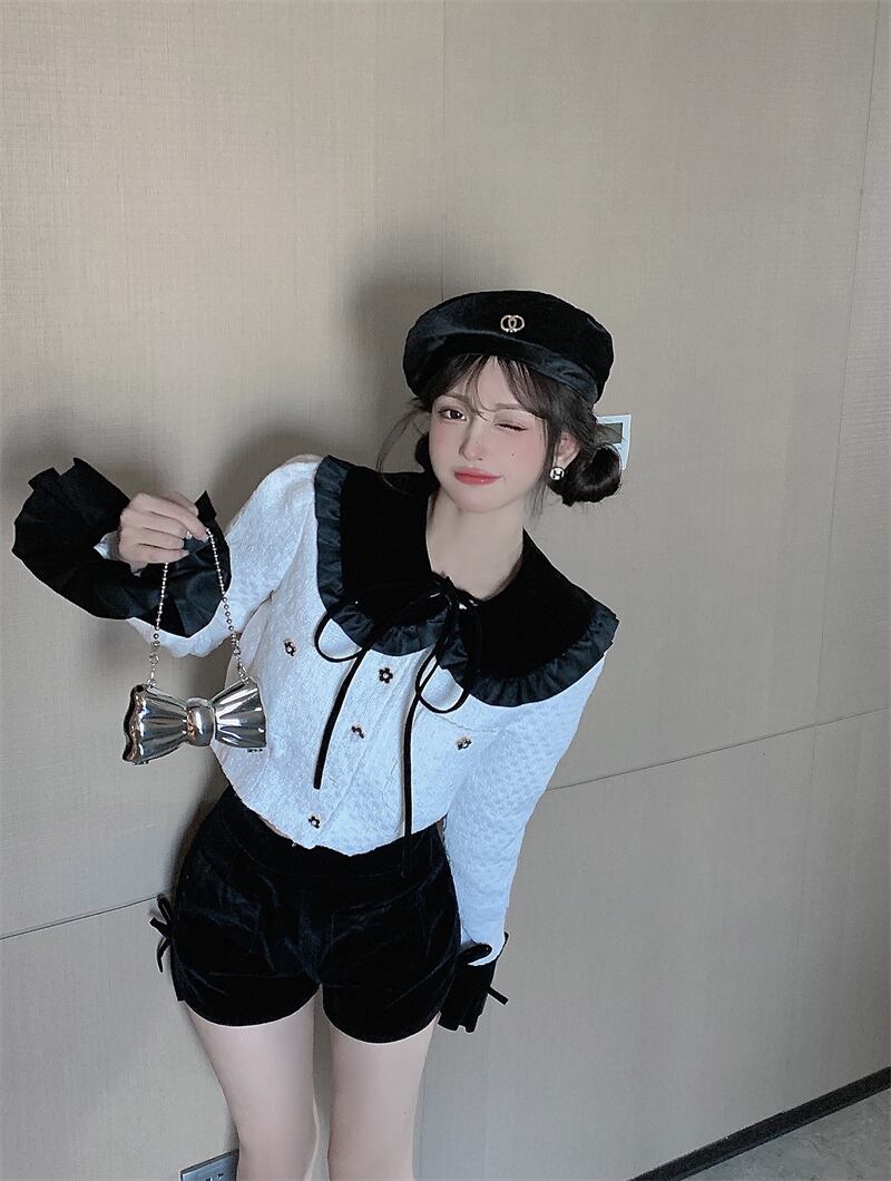 甘いホットガールスーツ秋ピーターパン襟ジャケットトップウエストベルベットショーツ 2 点セット服 大人ガーリー スウィート キュート カジュアル オータム 秋物 ブルマー
