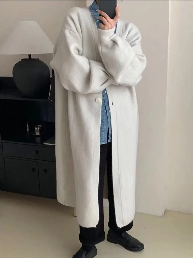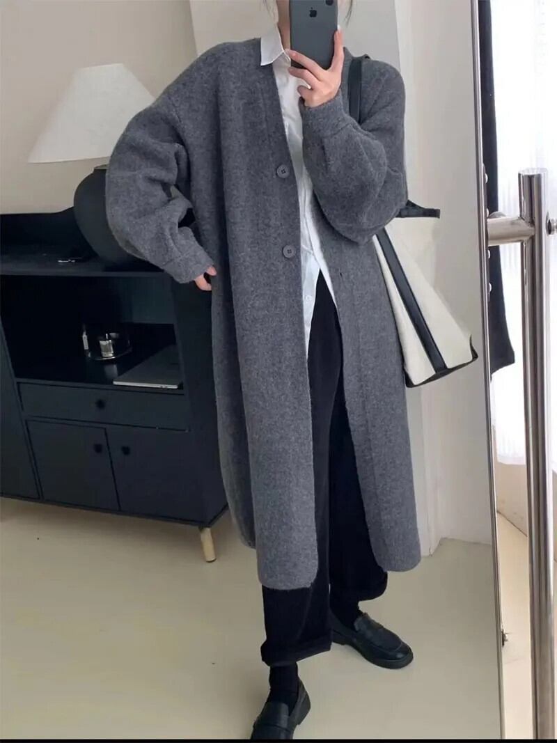 肥厚 V ネックロングシングルブレストニットカーディガン秋と冬ソリッドカラールーズセータージャケット オータム 秋物 ウィンター 冬物 Vネック