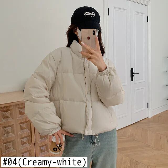 ソリッドダウンキルティングコート冬ショートルーズライトラグランスリーブネックキルティングコート ウィンター 冬物 ソリッドカラー